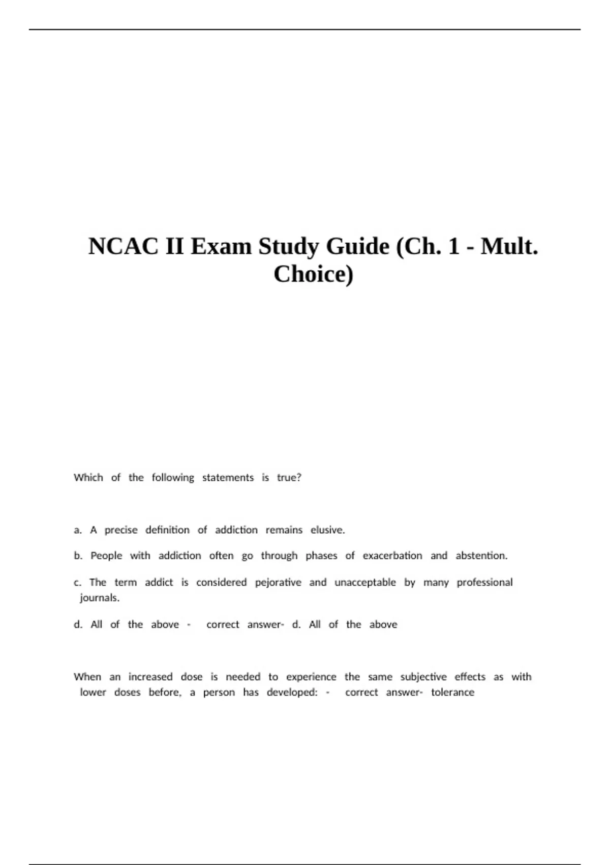NCAC II Exam Study Guide (Ch. 1 - Mult. Choice).