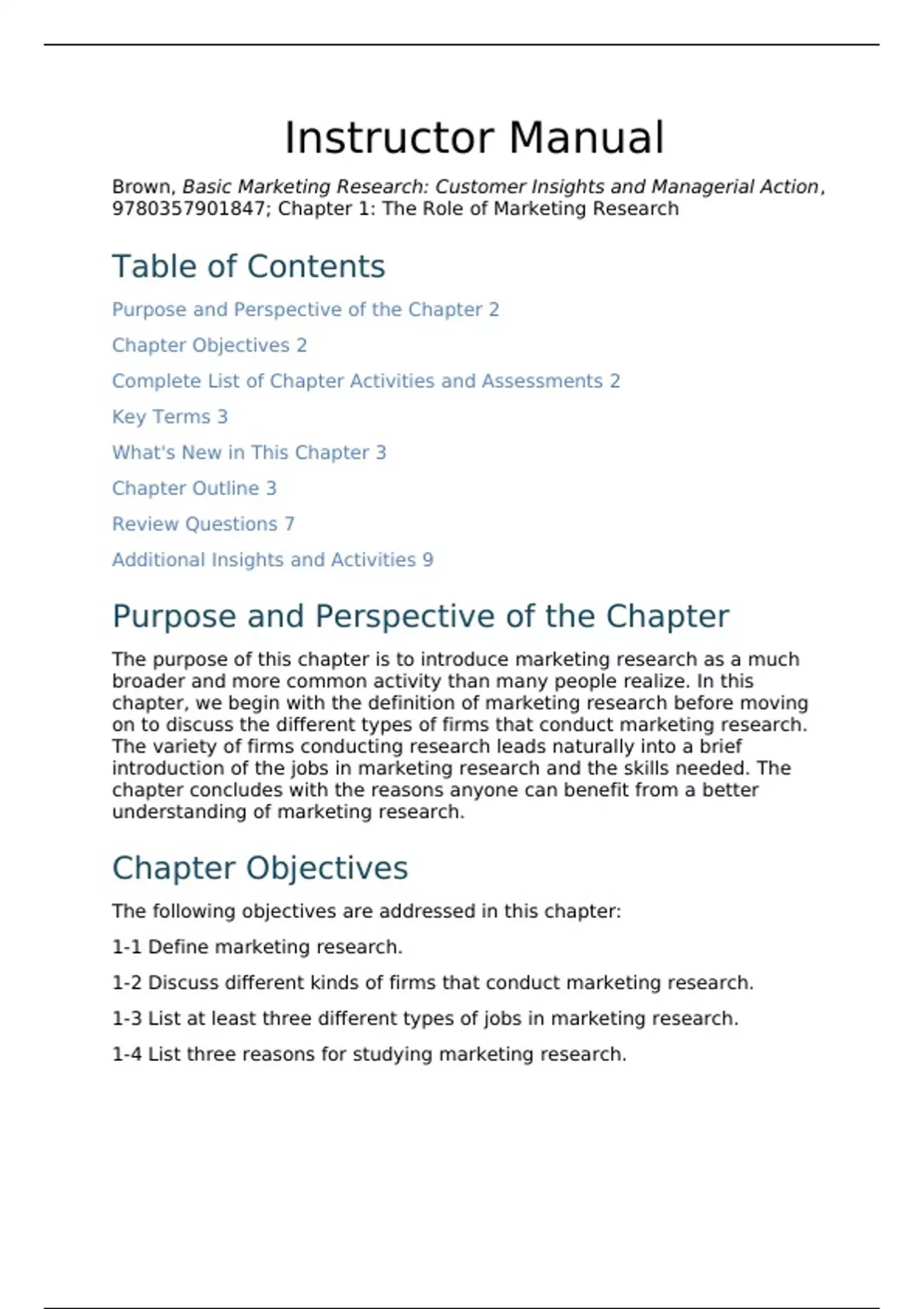 title: basic marketing research: customer insights and managerial action author: tom j. brown edition: 10th edition resource: solutions manual understand the process behind successful marketing research with this complete solutions manual. built for the 10th edition by brown, it helps students work through key concepts by providing accurate answers and explanations for each chapter’s exercises. includes: - solutions for case questions, data analysis problems, and conceptual reviews - topics include research design, sampling plans, data interpretation, and strategy alignment - supports stronger decision-making through applied examples - formatted to match textbook chapters and learning outcomes - ideal for marketing majors, instructors, and research project support NOTE: if you encounter any errors in questions like missing graphs, images, tables.... etc, please get in touch via PM. I will make sure to provide you with corrected version.