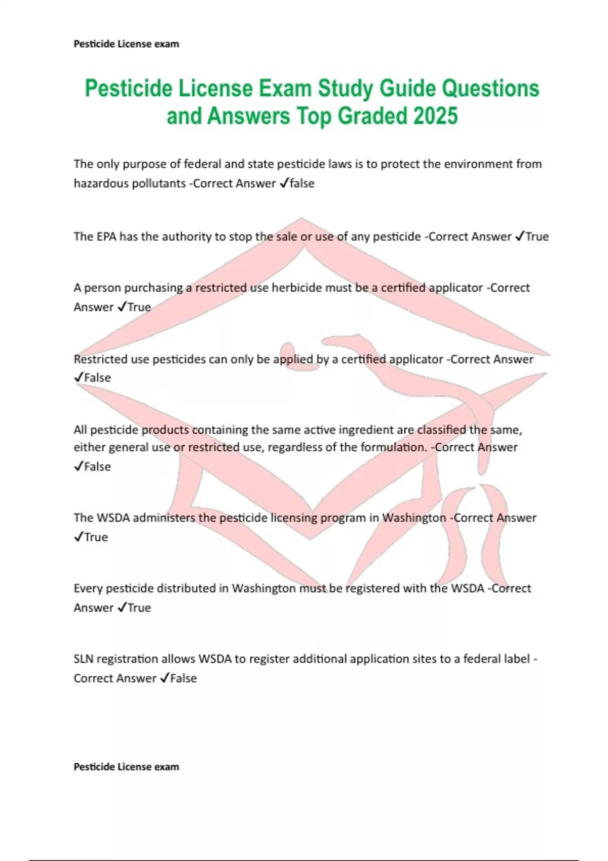 Pesticide License Exam Study Guide Questions and Answers Top Graded 2025