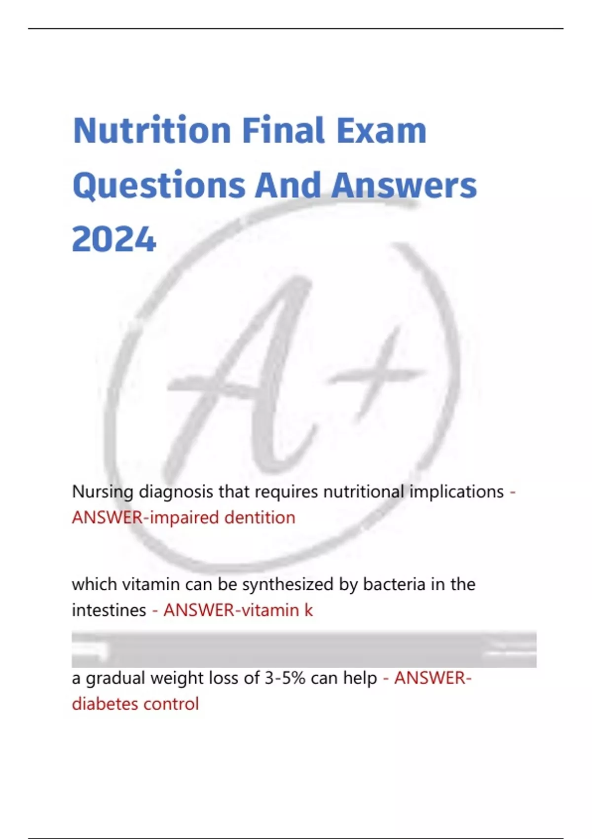 Nutrition Final Exam Questions And Answers 2024 Nutrition Final Exam Questions And Answers 2024
