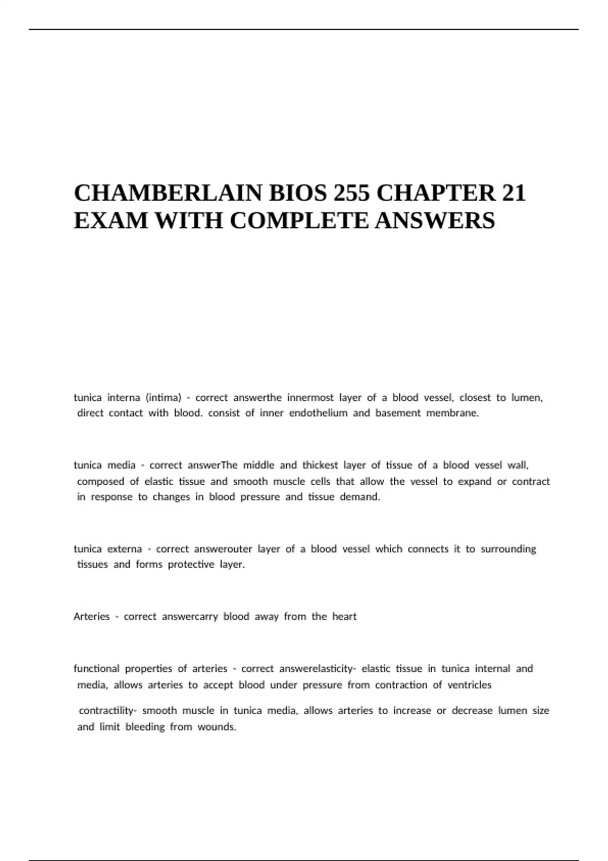 CHAMBERLAIN BIOS 255 CHAPTER 21 EXAM WITH COMPLETE ANSWERS.