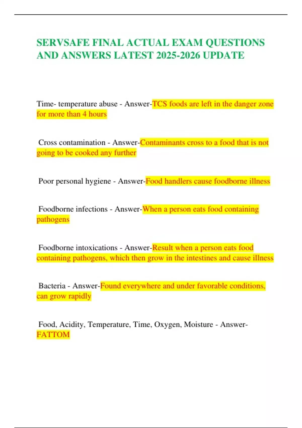 SERVSAFE FINAL ACTUAL EXAM QUESTIONS AND ANSWERS LATEST UPDATESERVSAFE FINAL ACTUAL EXAM QUESTIONS AND ANSWERS LATEST UPDATESERVSAFE FINAL ACTUAL EXAM QUESTIONS AND ANSWERS LATEST UPDATE
