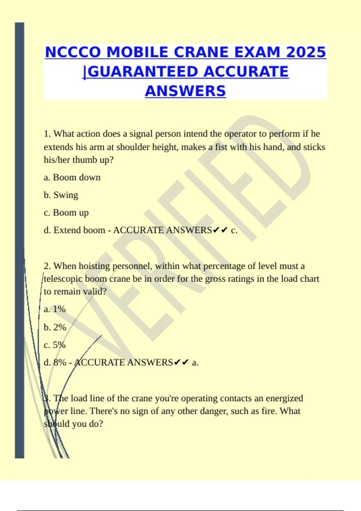 NCCCO MOBILE CRANE EXAM 2025 |GUARANTEED ACCURATE ANSWERS