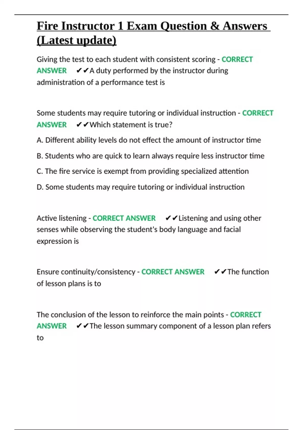 Fire Instructor 1 Exam Question & Answers (Latest update).docx