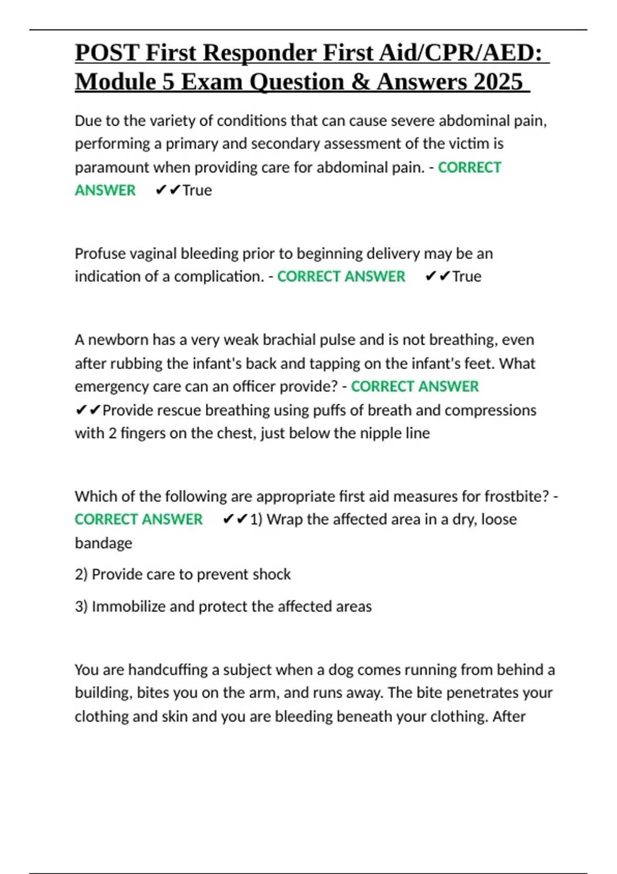 CORRECT ANSWER ✔✔1) Wrap the affected area in a dry, loose