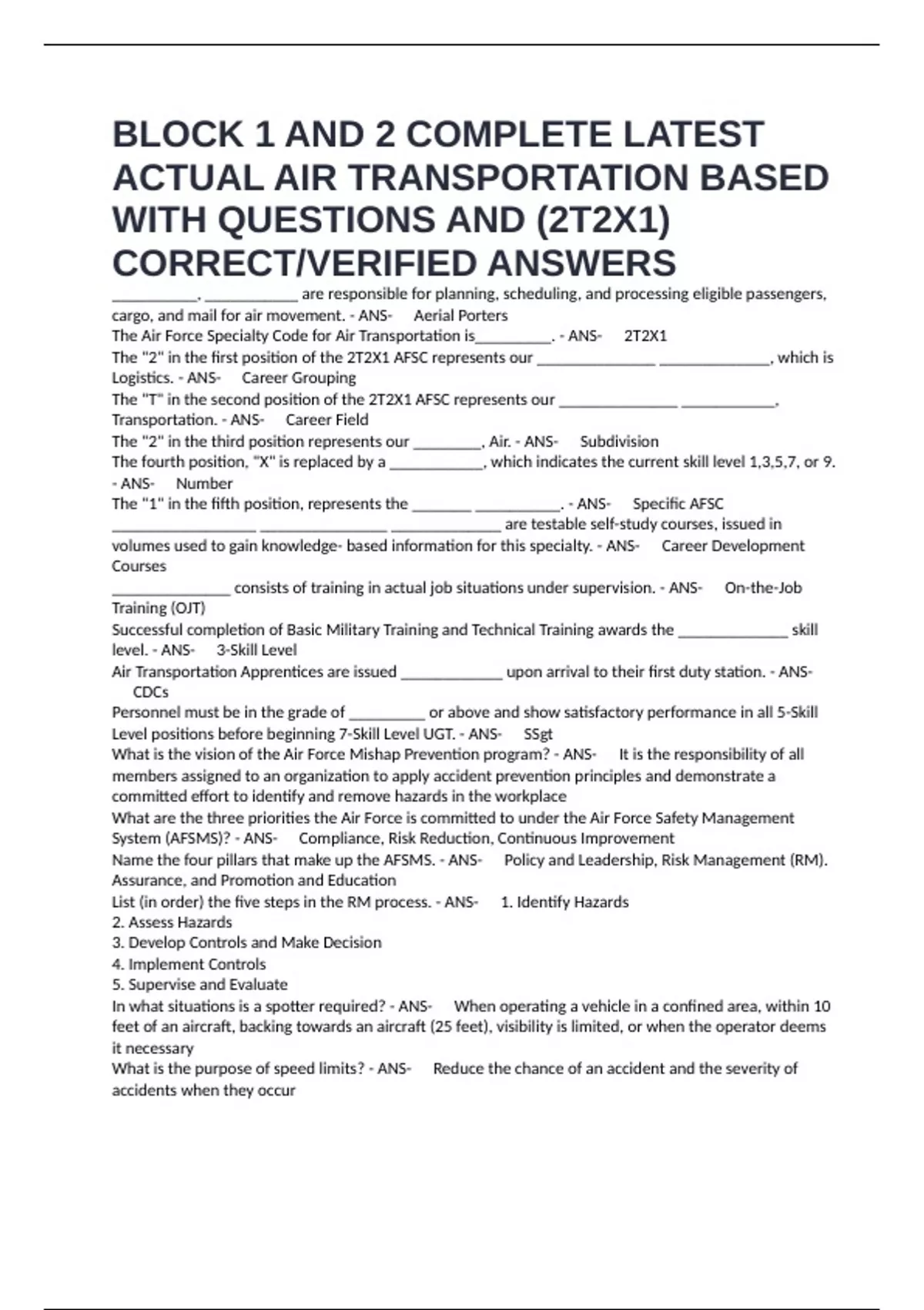 The Air Force Specialty Code for Air Transportation is_________. - ANS-✅2T2X1