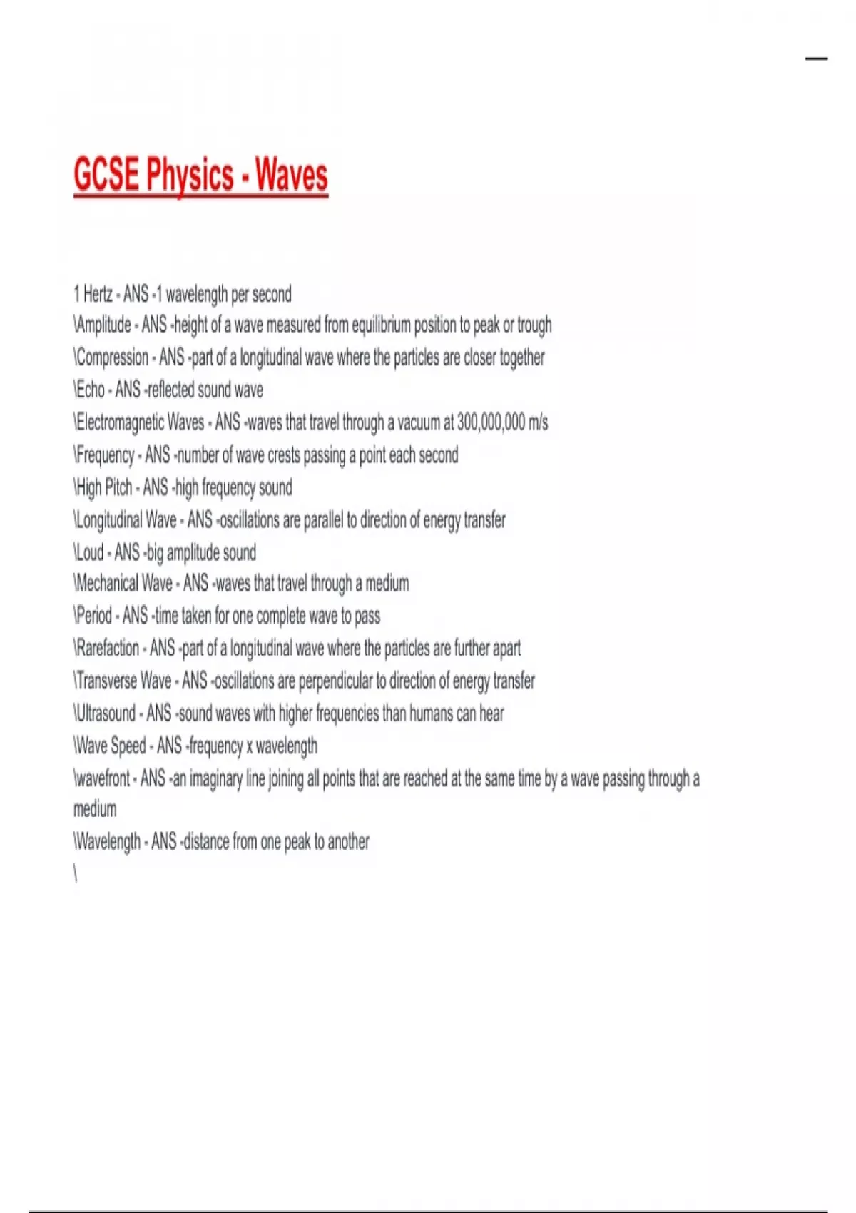GCSE Physics - Waves