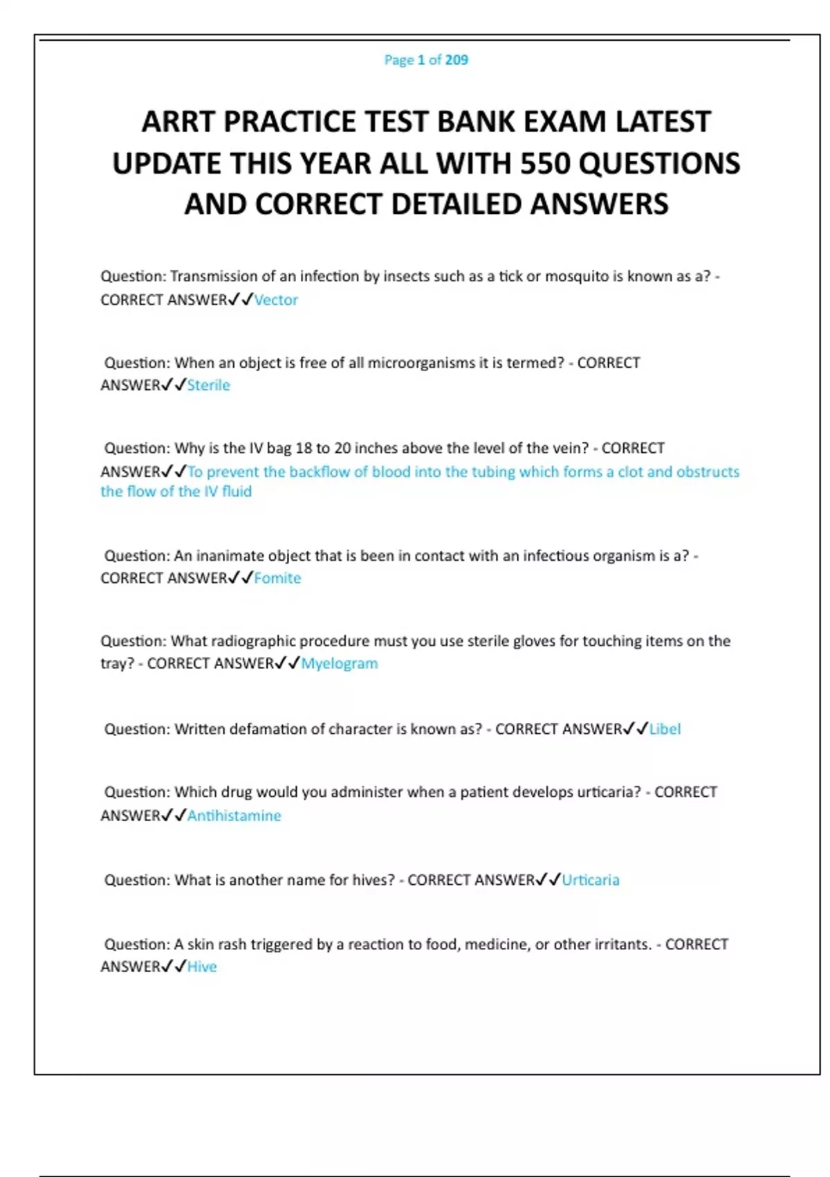 ARRT PRACTICE TEST BANK EXAM LATEST UPDATE THIS YEAR ALL WITH 550 QUESTIONS AND CORRECT DETAILED ANSWERS
