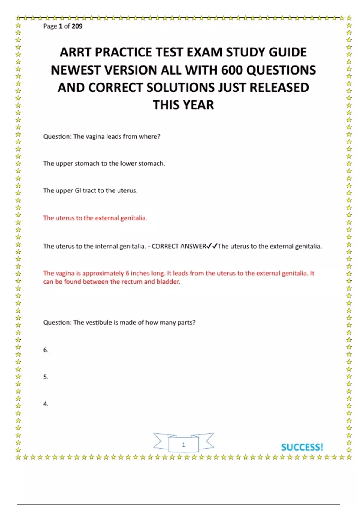 ARRT PRACTICE TEST EXAM STUDY GUIDE NEWEST VERSION ALL WITH 600 QUESTIONS AND CORRECT SOLUTIONS JUST RELEASED THIS YEAR