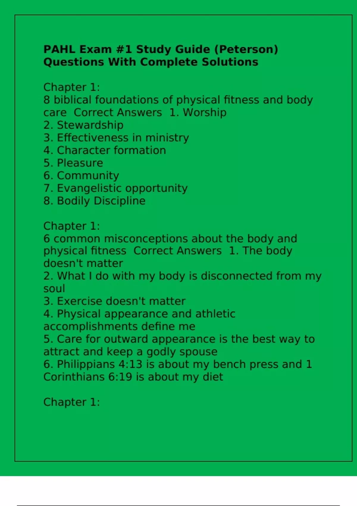 care Correct Answers 1. Worship