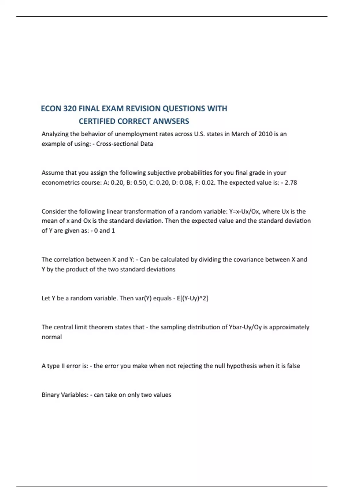 ECON 320 FINAL EXAM REVISION QUESTIONS WITH