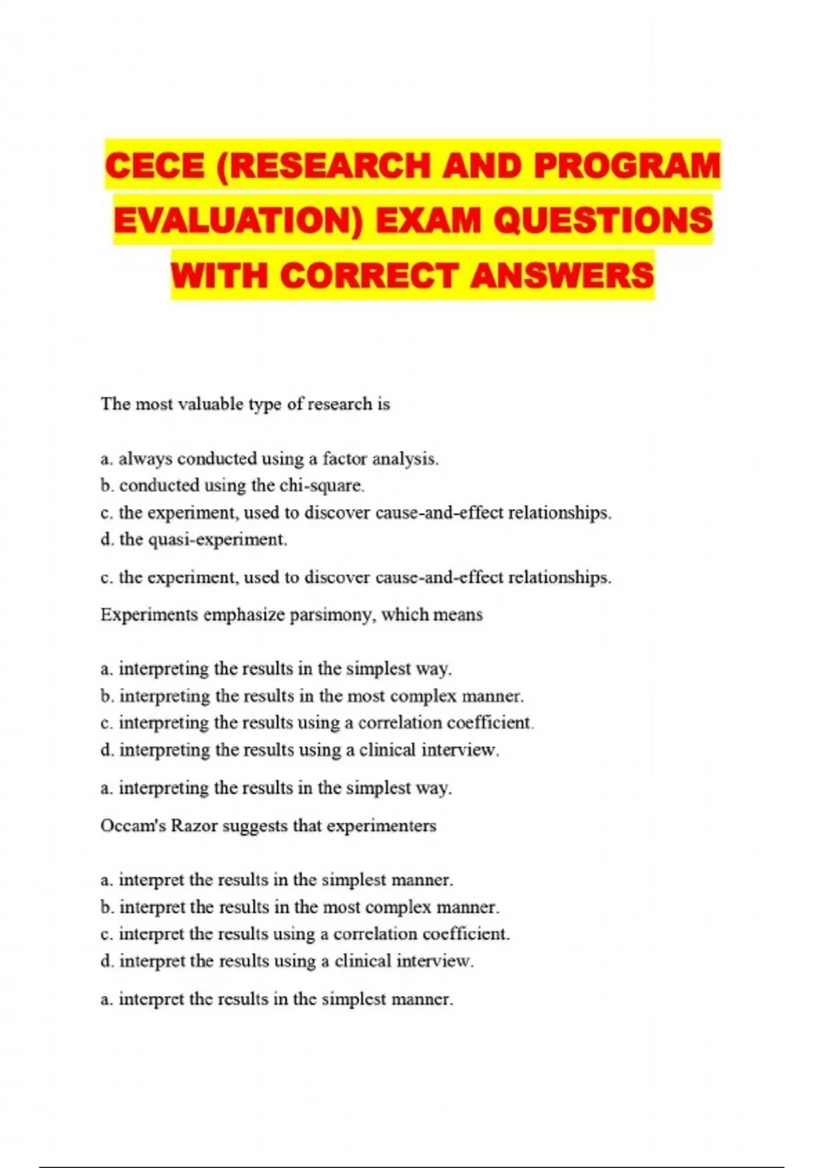 CECE (RESEARCH AND PROGRAM EVALUATION) EXAM QUESTIONS WITH CORRECT ANSWERS....