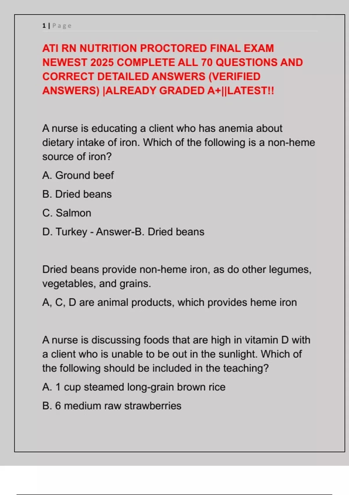 ATI RN NUTRITION PROCTORED FINAL EXAM