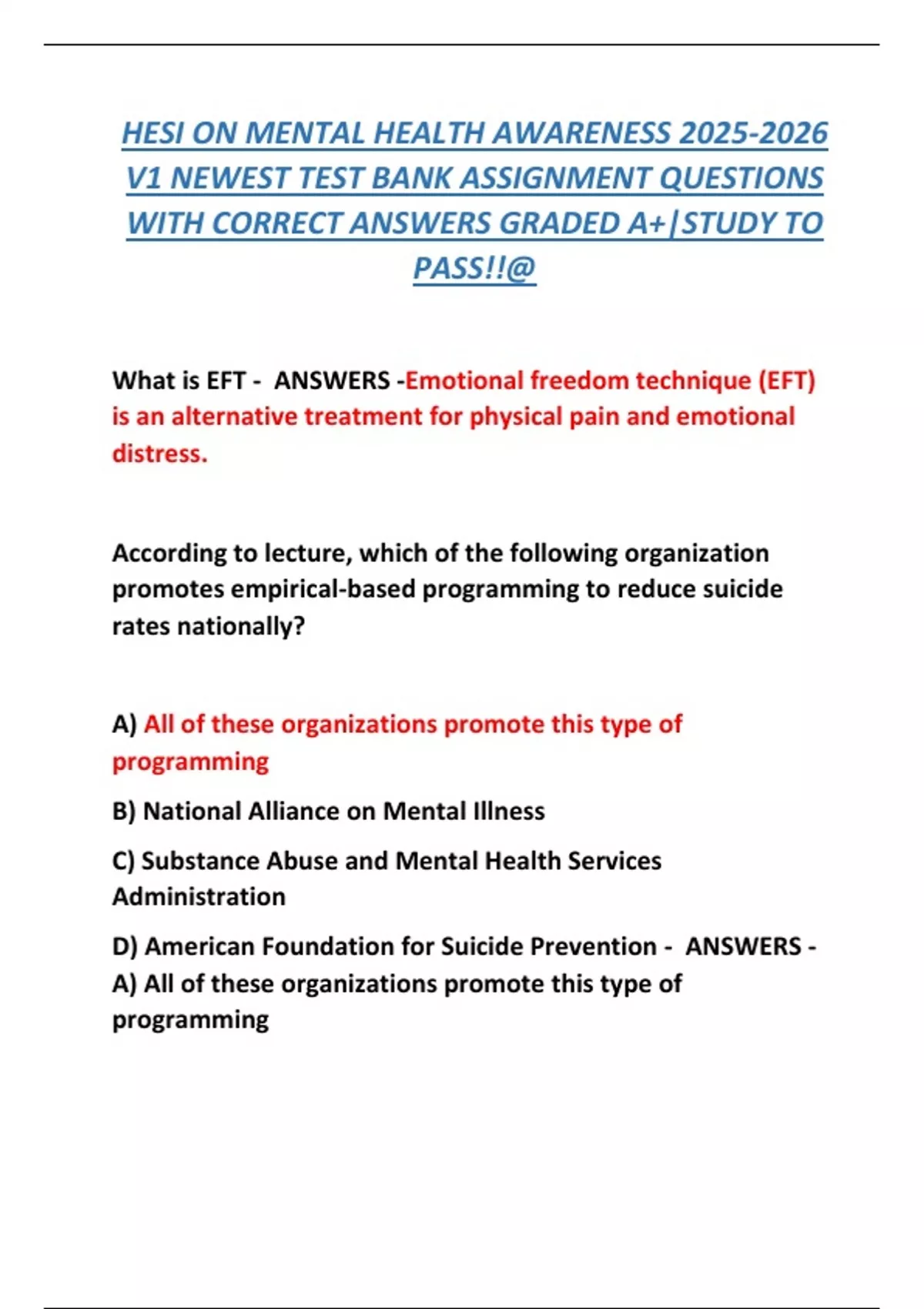 HESI ON MENTAL HEALTH AWARENESS V1 NEWEST TEST BANK ASSIGNMENT QUESTIONS WITH CORRECT ANSWERS GRADED A+|STUDY TO PASS!!@HESI ON MENTAL HEALTH AWARENESS V1 NEWEST TEST BANK ASSIGNMENT QUESTIONS WITH CORRECT ANSWERS GRADED A+|STUDY TO PASS!!@HESI ON MENTAL HEALTH AWARENESS V1 NEWEST TEST BANK ASSIGNMENT QUESTIONS WITH CORRECT ANSWERS GRADED A+|STUDY TO PASS!!@HESI ON MENTAL HEALTH AWARENESS V1 NEWEST TEST BANK ASSIGNMENT QUESTIONS WITH CORRECT ANSWERS GRADED A+|STUDY TO PASS!!@HESI ON MENTAL HEALTH AWARENESS V1 NEWEST TEST BANK ASSIGNMENT QUESTIONS WITH CORRECT ANSWERS GRADED A+|STUDY TO PASS!!@HESI ON MENTAL HEALTH AWARENESS V1 NEWEST TEST BANK ASSIGNMENT QUESTIONS WITH CORRECT ANSWERS GRADED A+|STUDY TO PASS!!@HESI ON MENTAL HEALTH AWARENESS V1 NEWEST TEST BANK ASSIGNMENT QUESTIONS WITH CORRECT ANSWERS GRADED A+|STUDY TO PASS!!@HESI ON MENTAL HEALTH AWARENESS V1 NEWEST TEST BANK ASSIGNMENT QUESTIONS WITH CORRECT ANSWERS GRADED A+|STUDY TO PASS!!@HESI ON MENTAL HEALTH AWARENESS V1 NEWEST TEST BANK ASSIGNMENT QUESTIONS WITH CORRECT ANSWERS GRADED A+|STUDY TO PASS!!@