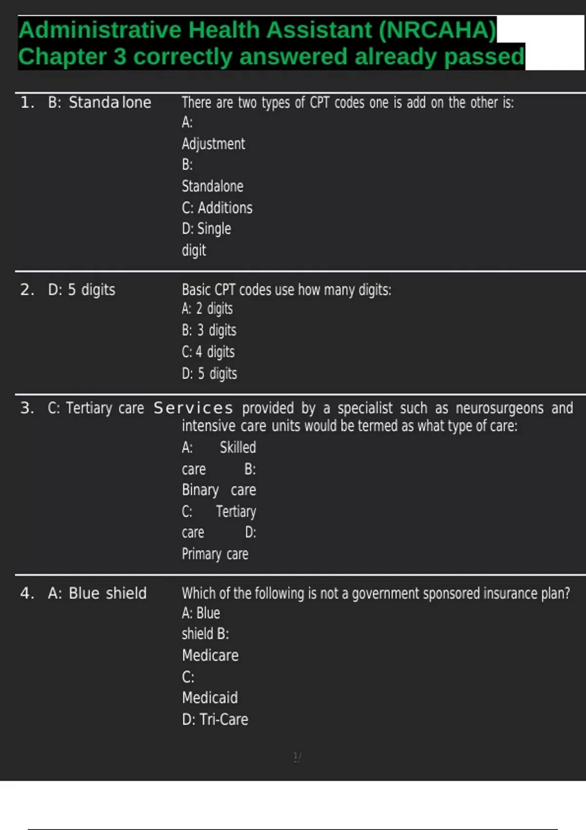 2. D: 5 digits Basic CPT codes use how many digits: