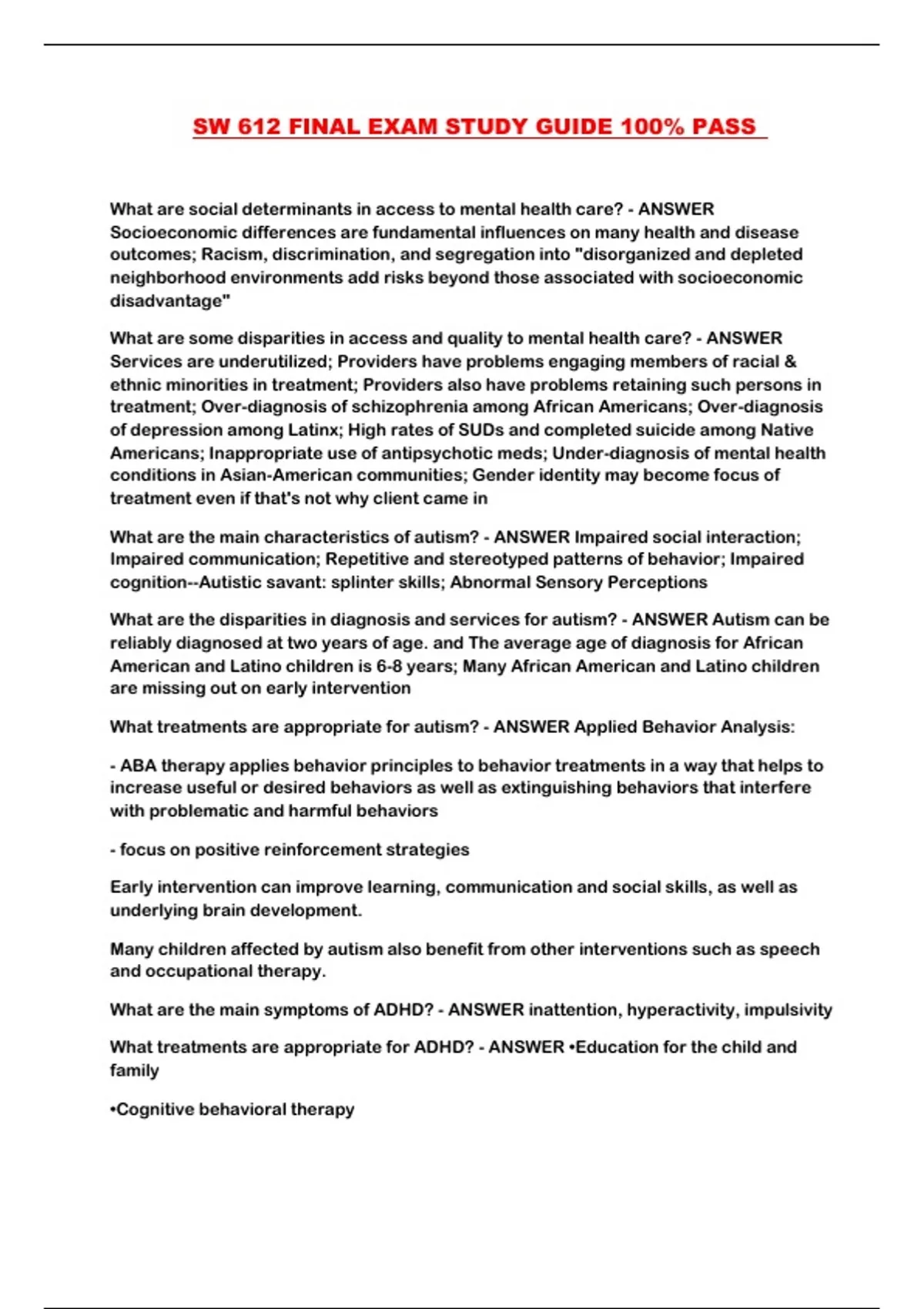 SW 612 FINAL EXAM STUDY GUIDE 100% PASS ...