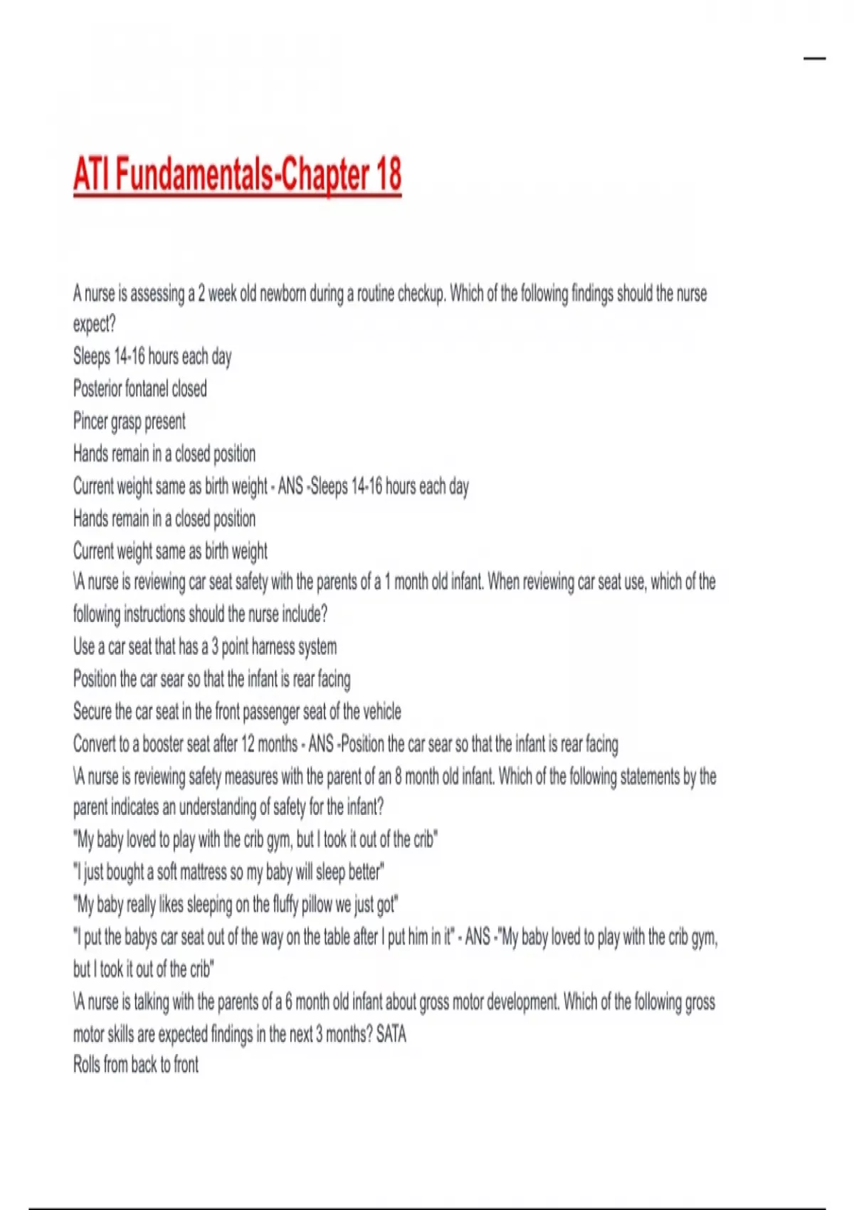 Current weight same as birth weight - ANS -Sleeps 14-16 hours each day