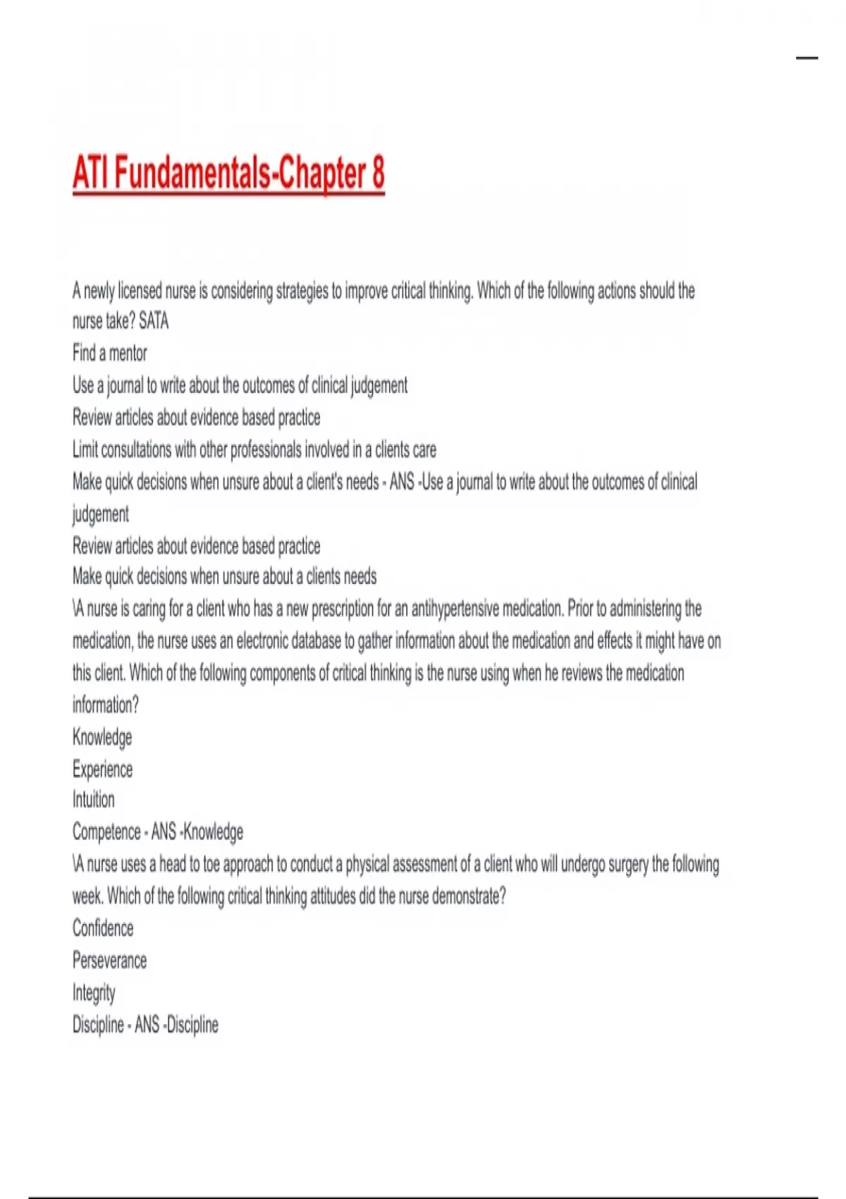 A newly licensed nurse is considering strategies to improve critical thinking. Which of the following actions should the