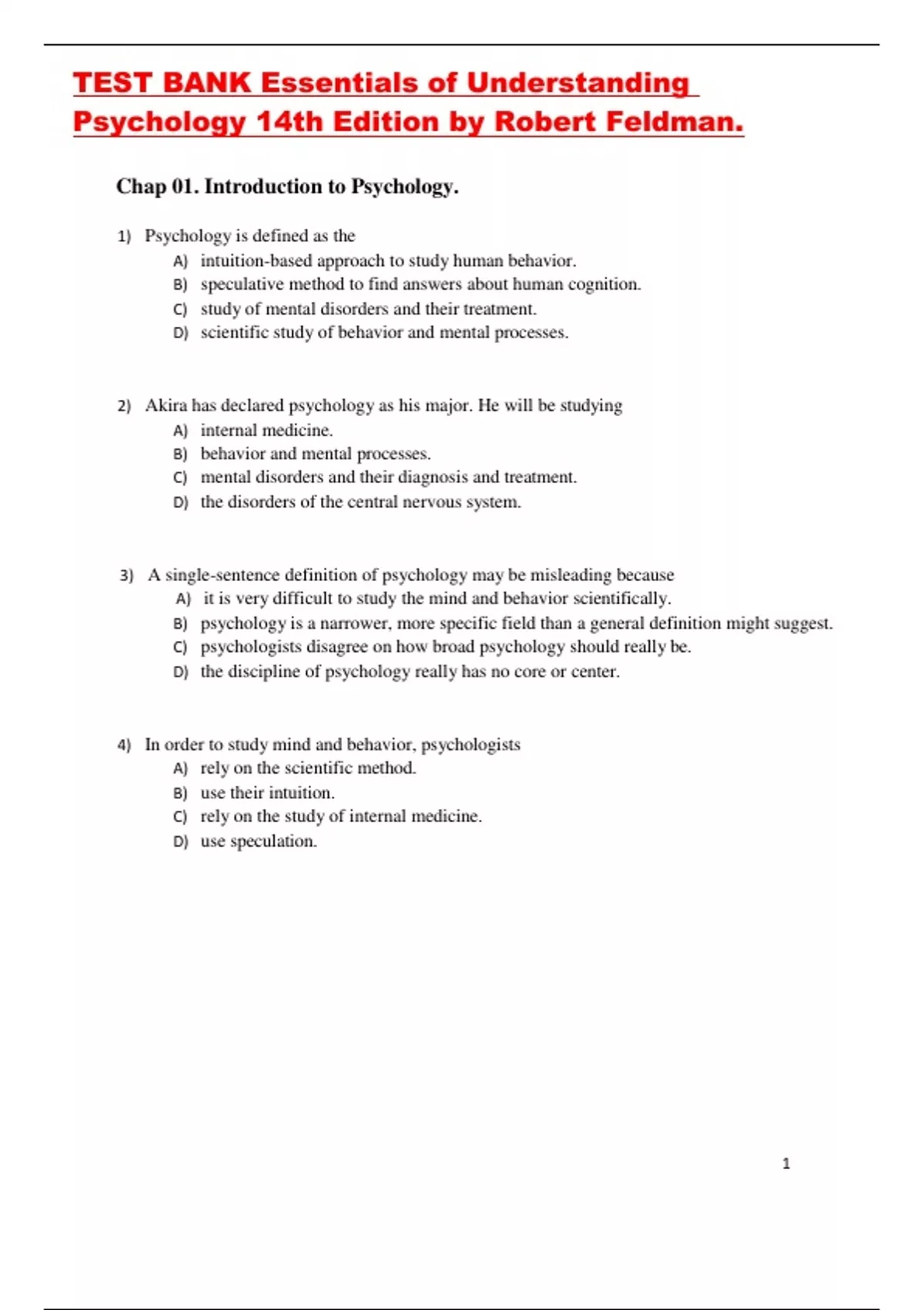 TEST BANK Essentials of Understanding Psychology 14th Edition by Robert Feldman Latest Pdf.