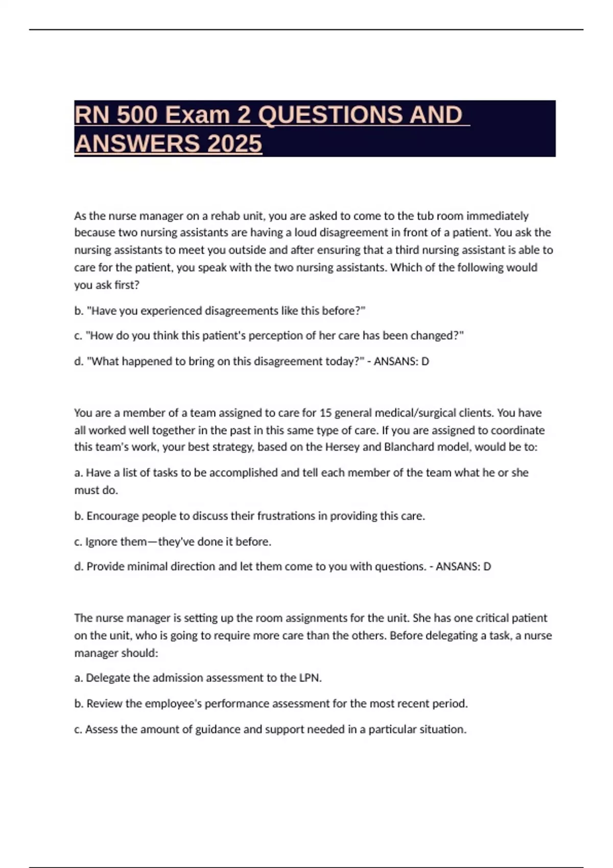 RN 500 Exam 2 QUESTIONS AND ANSWERS 2025