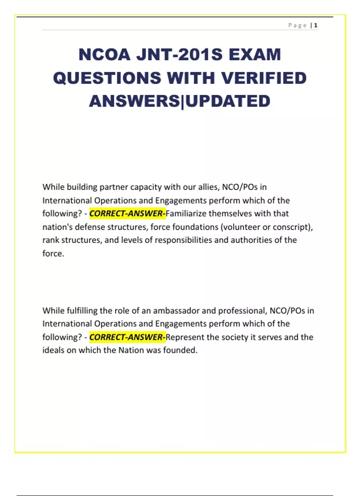 NCOA JNT-201S EXAM
