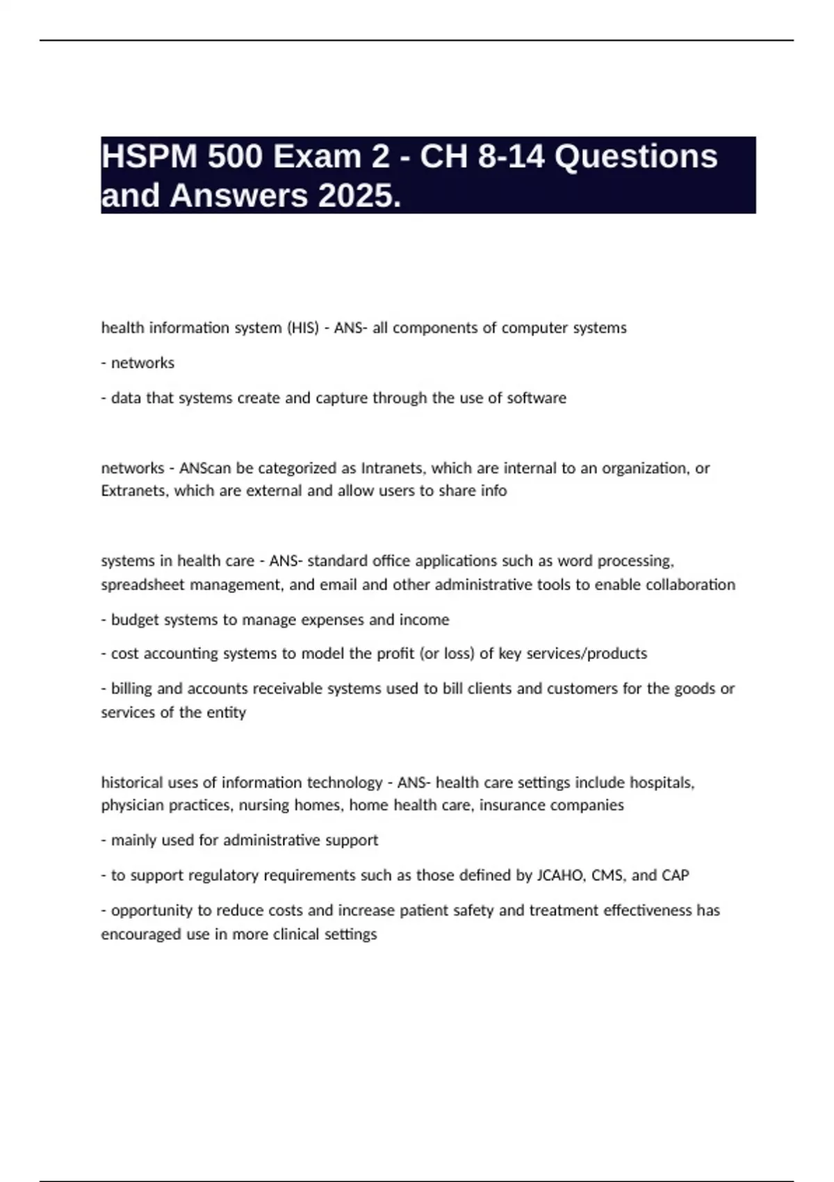HSPM 500 Exam 2 - CH 8-14 Questions and Answers 2025.