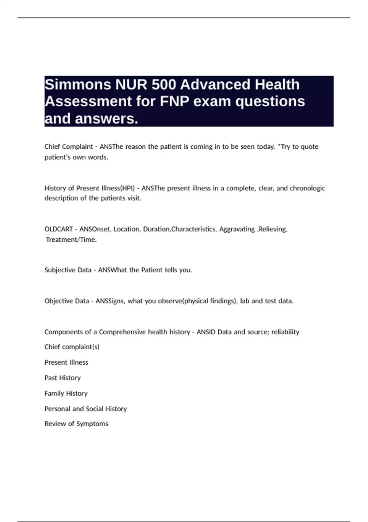 Simmons NUR 500 Advanced Health Assessment for FNP exam questions and answers.