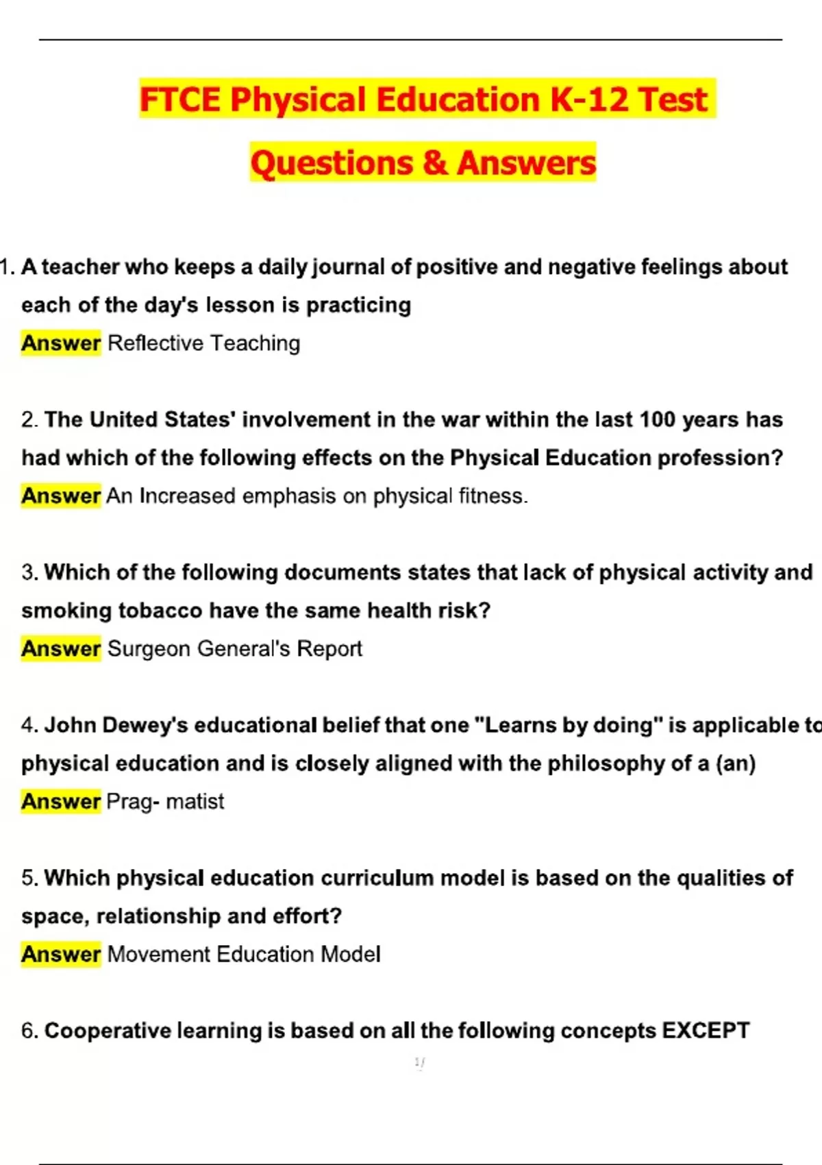 FTCE Physical Education K-12 Test (Latest 2025 / 2026 Update) Questions and Verified Answers | 100% Correct | Grade A+. FTCE Physical Education K-12 2025 exam format changes. How to pass FTCE Physical Education K-12 on first attempt. FTCE Physical Education K-12 study guide with practice questions. Best online resources for FTCE Physical Education K-12 preparation. FTCE Physical Education K-12 exam tips and strategies. Free FTCE Physical Education K-12 practice tests with answers. FTCE Physical Education K-12 content knowledge review. FTCE Physical Education K-12 exam scoring and passing requirements. FTCE Physical Education K-12 test prep courses near me. FTCE Physical Education K-12 vs FTCE Health K-12 exam differences. FTCE Physical Education K-12 exam registration deadline 2025. FTCE Physical Education K-12 sample questions and explanations. FTCE Physical Education K-12 study plan for working professionals. FTCE Physical Education K-12 exam retake policy and waiting period. FTCE Physical Education K-12 test anxiety management techniques. FTCE Physical Education K-12 exam accommodations for disabilities. FTCE Physical Education K-12 certification requirements for out-of-state teachers. FTCE Physical Education K-12 exam day checklist and what to bring. FTCE Physical Education K-12 test centers in Florida locations. FTCE Physical Education K-12 exam fee and payment options. FTCE Physical Education K-12 study groups in my area. FTCE Physical Education K-12 exam difficulty level compared to other FTCE tests. FTCE Physical Education K-12 exam updates for school year. FTCE Physical Education K-12 exam time management strategies. FTCE Physical Education K-12 certification renewal requirements