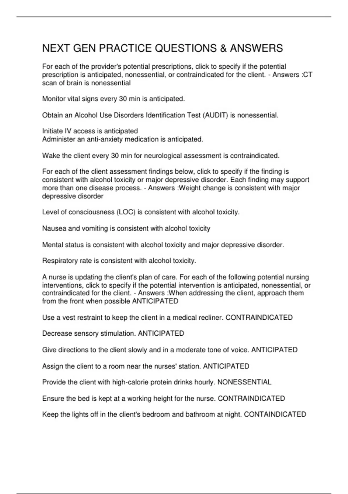 NEXT GEN PRACTICE QUESTIONS & ANSWERS