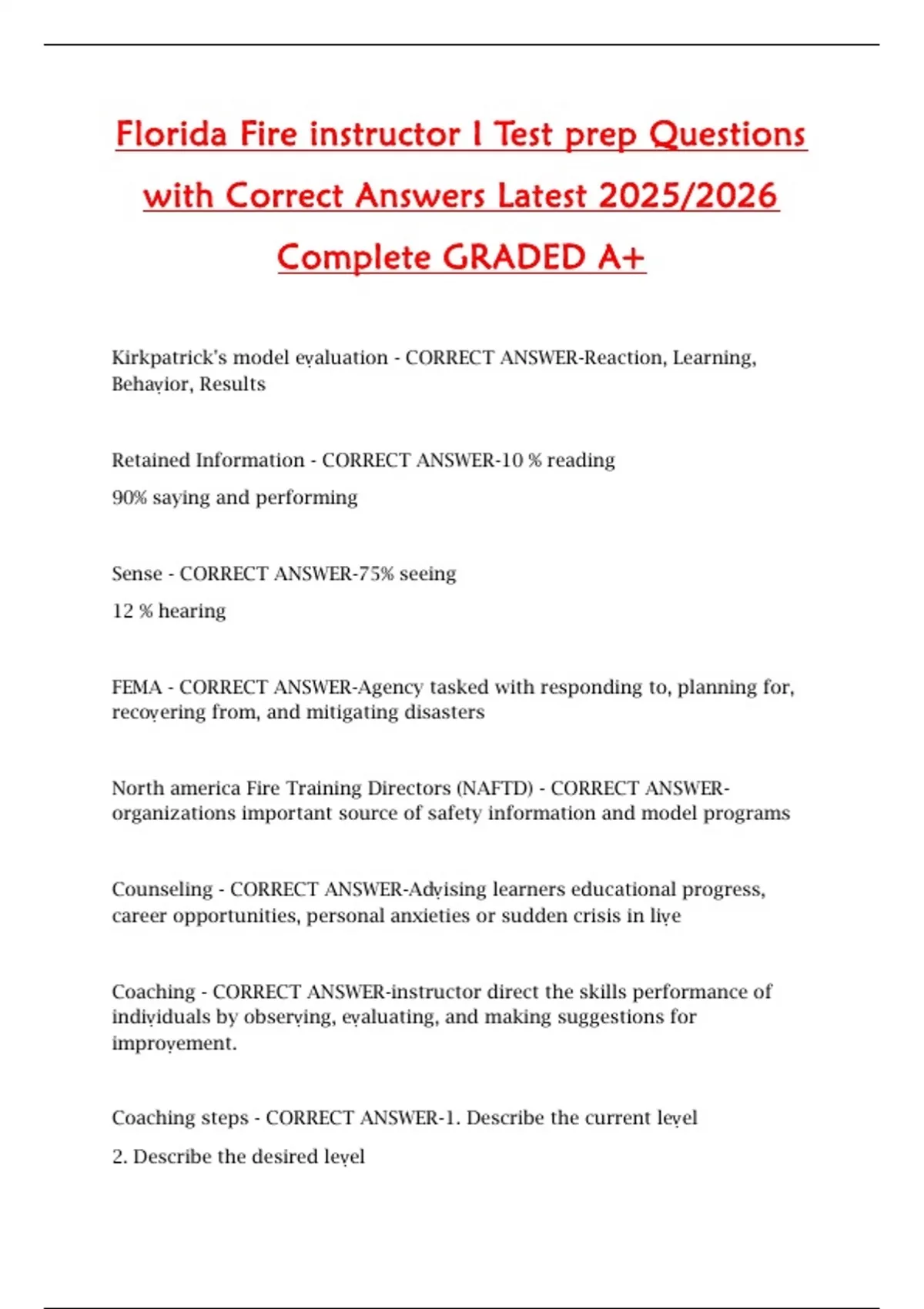 North america Fire Training Directors (NAFTD) - CORRECT ANSWER-