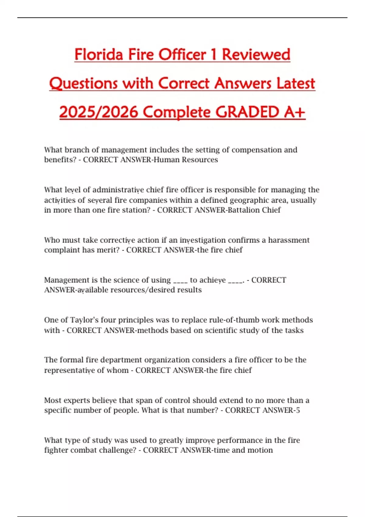 Florida Fire Officer 1 Reviewed Questions with Correct Answers Latest 2025/2026 Complete GRADED A+ Florida Fire Officer 1 Reviewed Questions with Correct Answers Latest 2025/2026 Complete GRADED A+ Florida Fire Officer 1 Reviewed Questions with Correct Answers Latest 2025/2026 Complete GRADED A+ Florida Fire Officer 1 Reviewed Questions with Correct Answers Latest 2025/2026 Complete GRADED A+ Florida Fire Officer 1 Reviewed Questions with Correct Answers Latest 2025/2026 Complete GRADED A+ Florida Fire Officer 1 Reviewed Questions with Correct Answers Latest 2025/2026 Complete GRADED A+