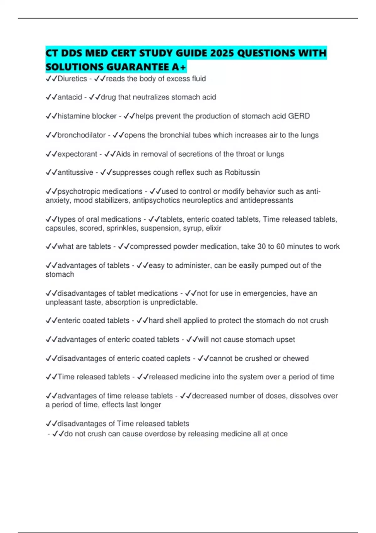 CT DDS MED CERT STUDY GUIDE 2025 QUESTIONS WITH SOLUTIONS GUARANTEE A+