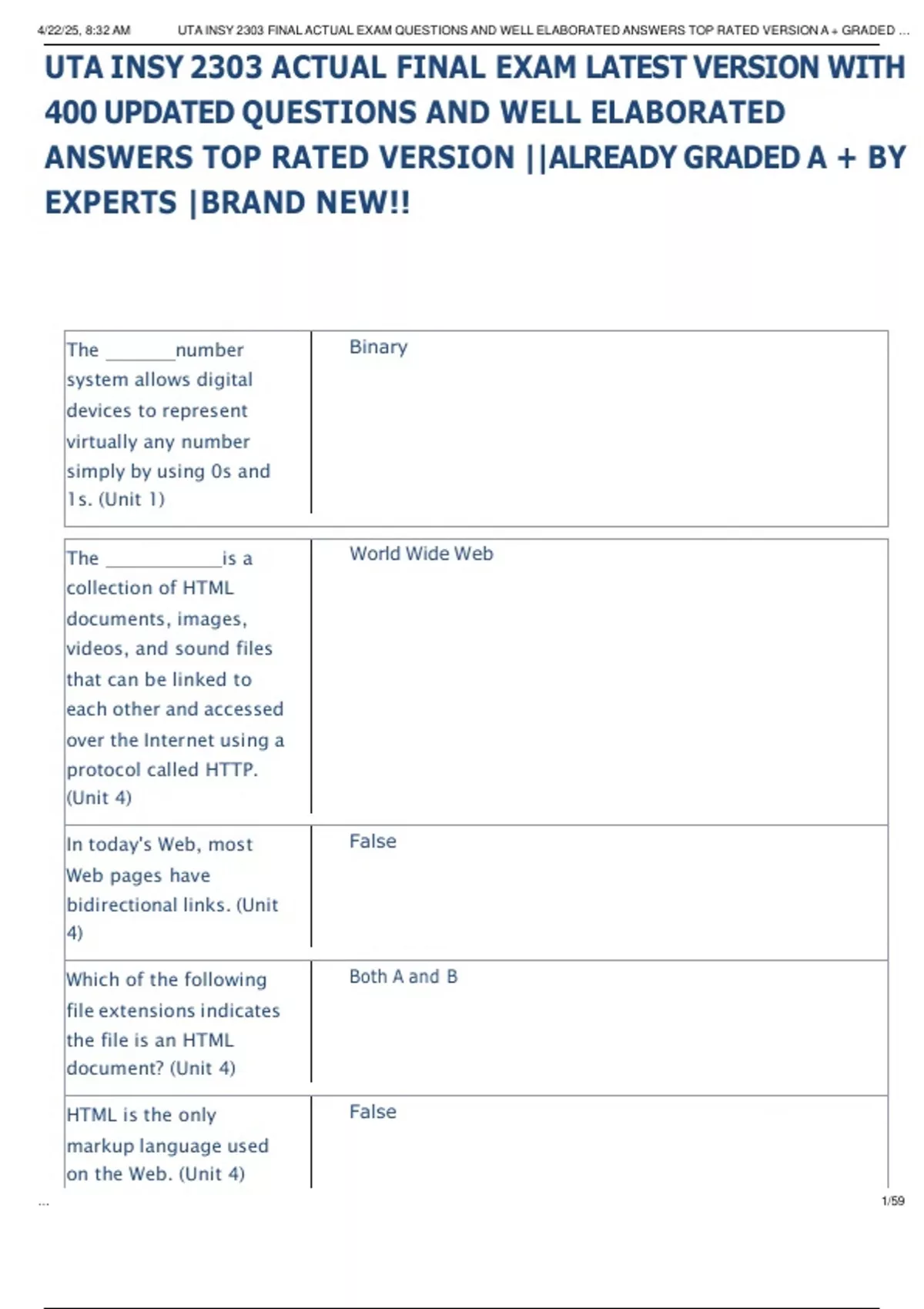 , 4/22/25, 8:32 AM UTA INSY 2303 FINAL ACTUAL EXAM QUESTIONS AND WELL ELABORATED ANSWERS TOP RATED VERSION A + GRADED …