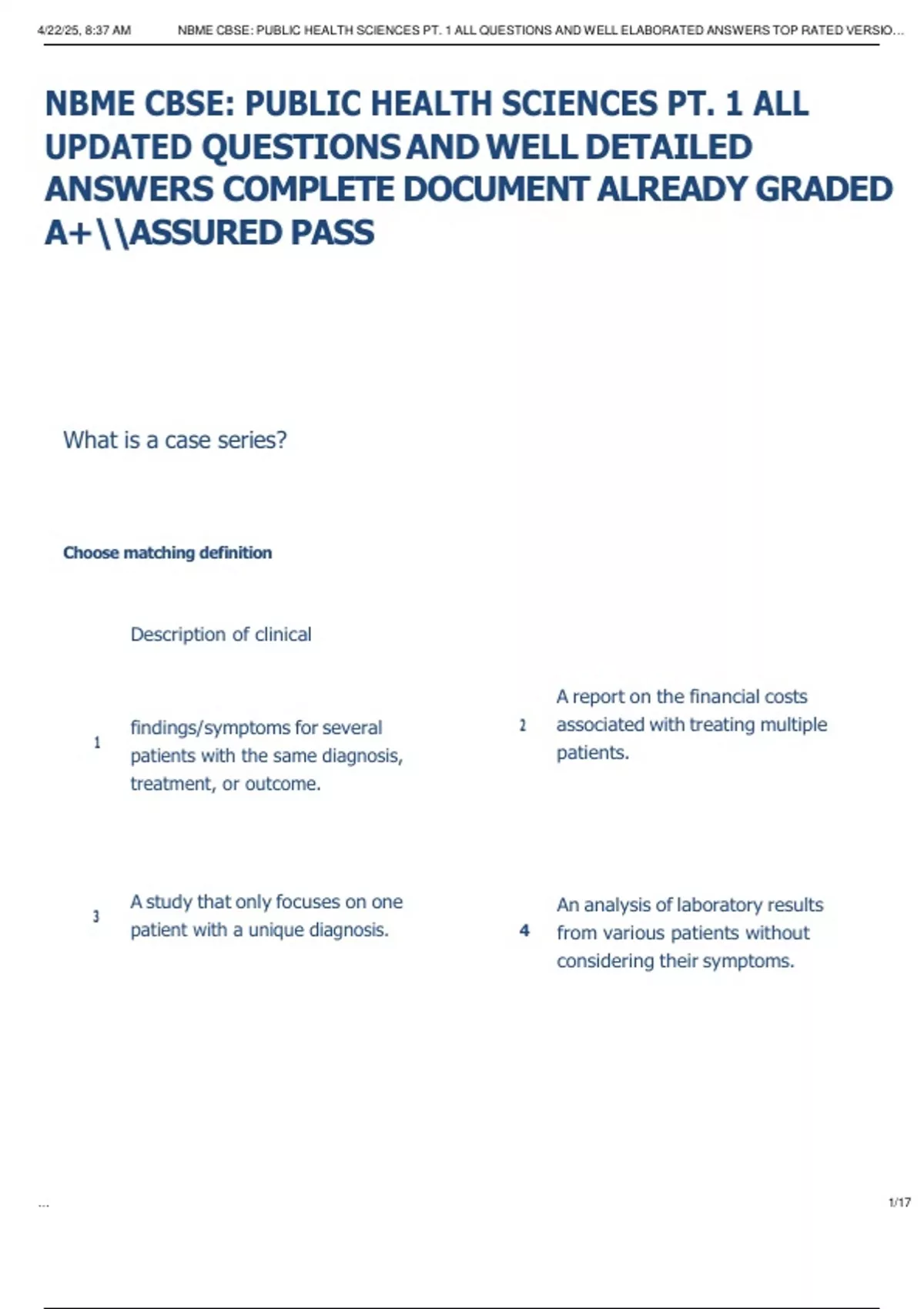 , 4/22/25, 8:38 AM NBME CBSE: PUBLIC HEALTH SCIENCES PT. 1 ALL QUESTIONS AND WELL ELABORATED ANSWERS TOP RATED VERSIO…