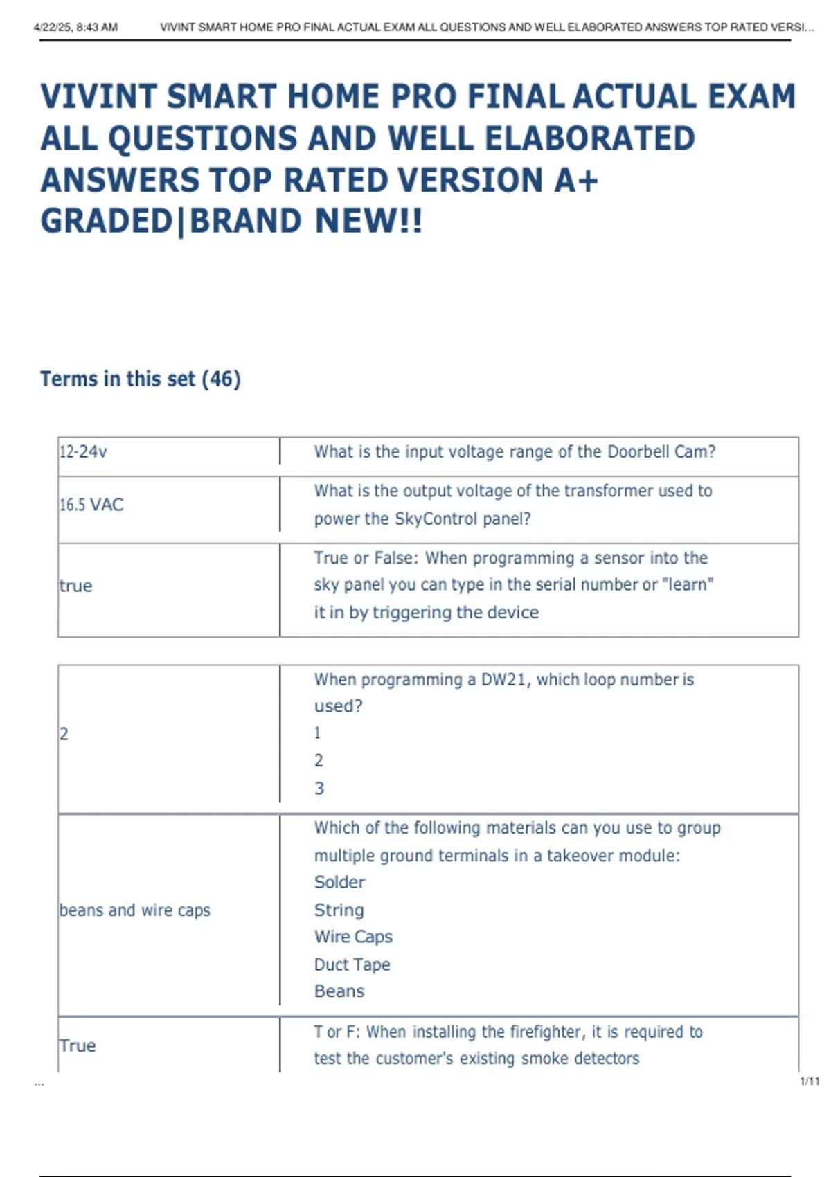 , 4/22/25, 8:43 AM VIVINT SMART HOME PRO FINAL ACTUAL EXAM ALL QUESTIONS AND WELL ELABORATED ANSWERS TOP RATED VERSI…
