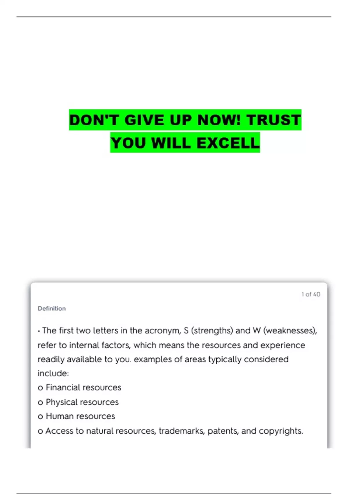 • The first two letters in the acronym, S (strengths) and W (weaknesses),
