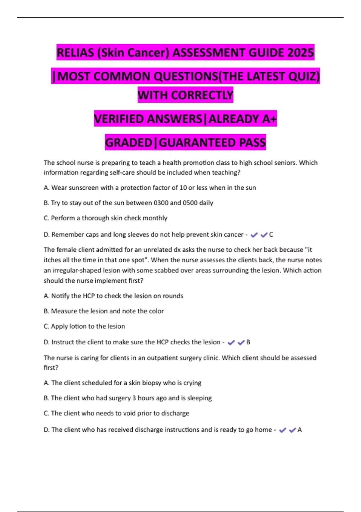 D. Instruct the client to make sure the HCP checks the lesion - B