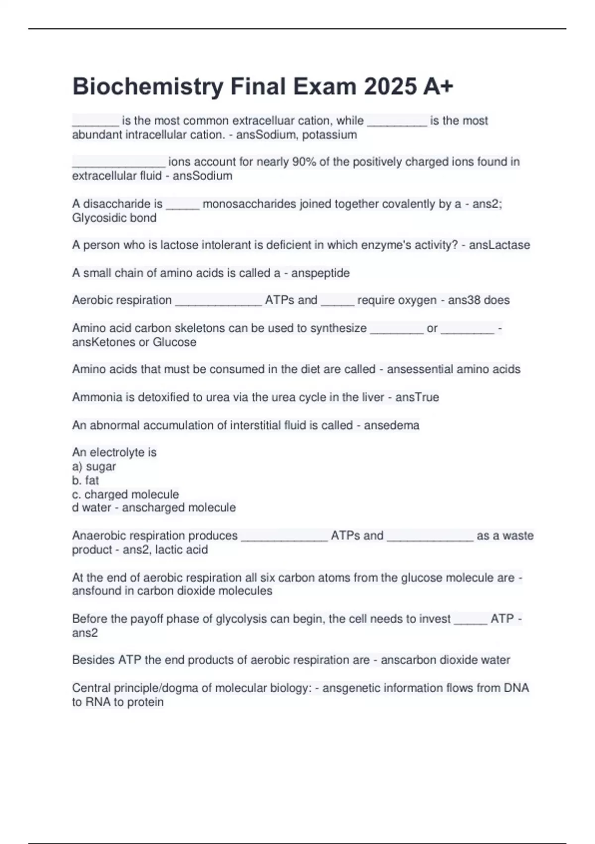 Biochemistry Final Exam 2025 A+.pdf 1. Document information