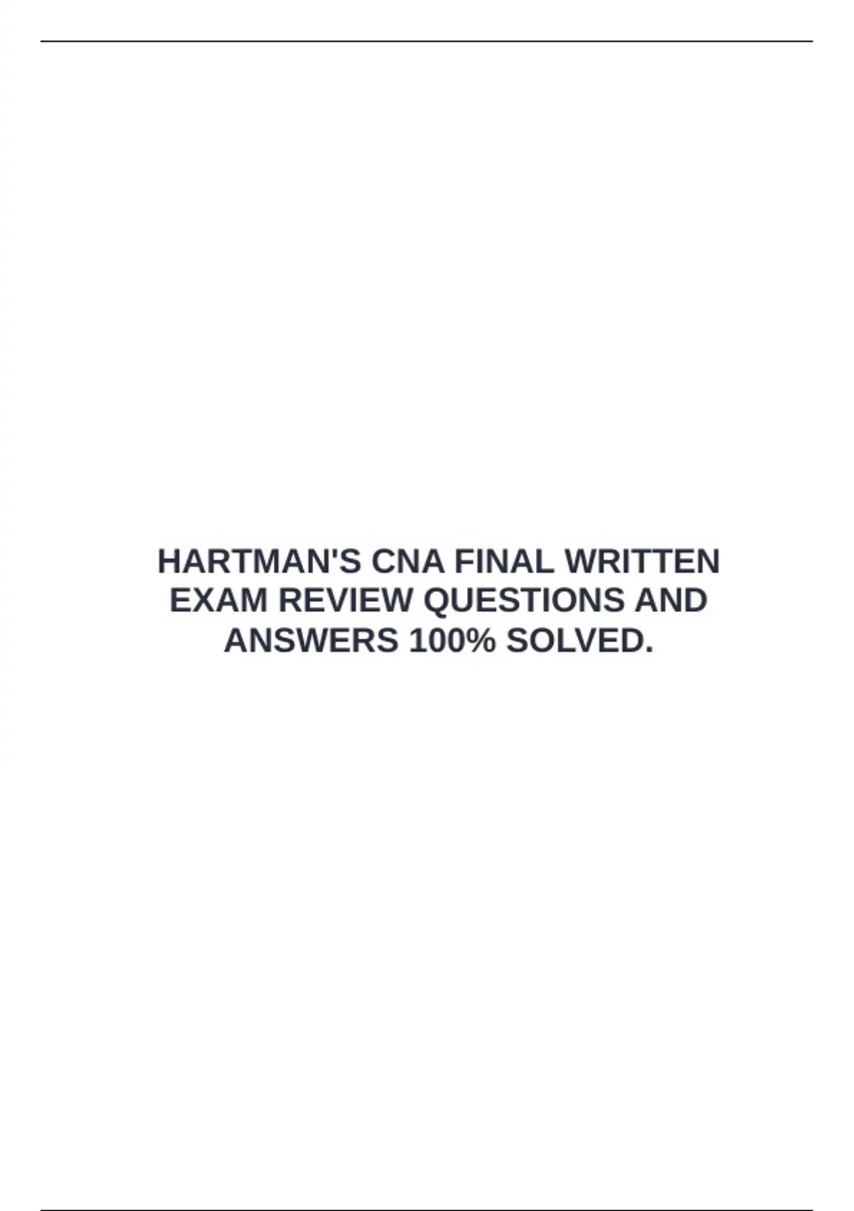 HARTMAN'S CNA FINAL WRITTEN EXAM REVIEW QUESTIONS AND ANSWERS 100% SOLVED.