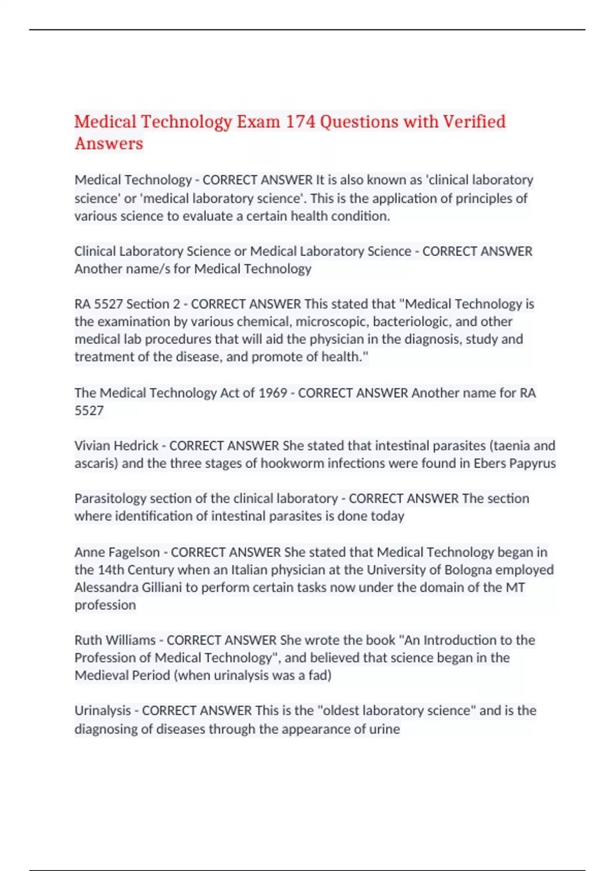 Medical Technology - CORRECT ANSWER It is also known as 'clinical laboratory