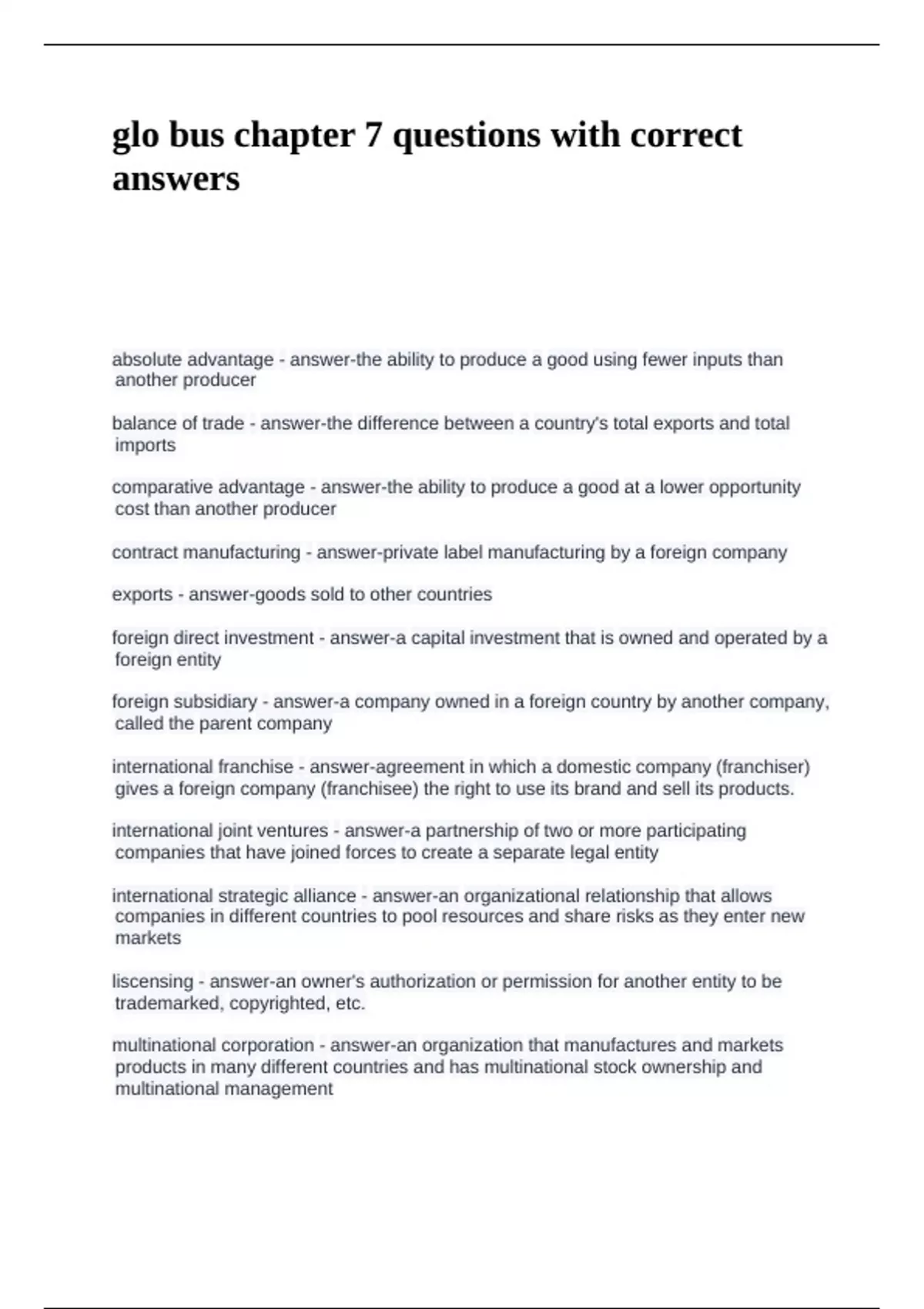 absolute advantage - answer-the ability to produce a good using fewer inputs than