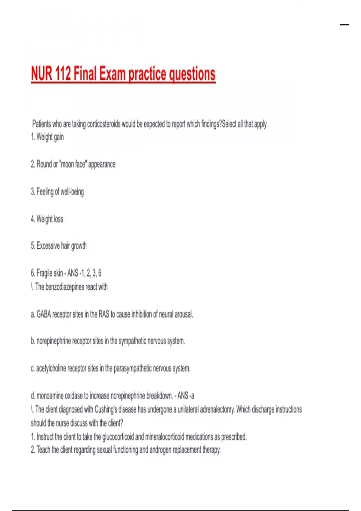 NUR 112 Final Exam practice questions