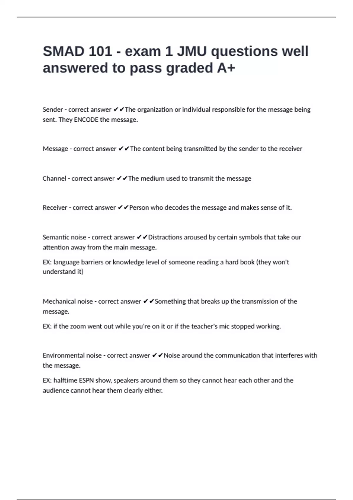 SMAD 101 - exam 1 JMU questions well answered to pass graded A+