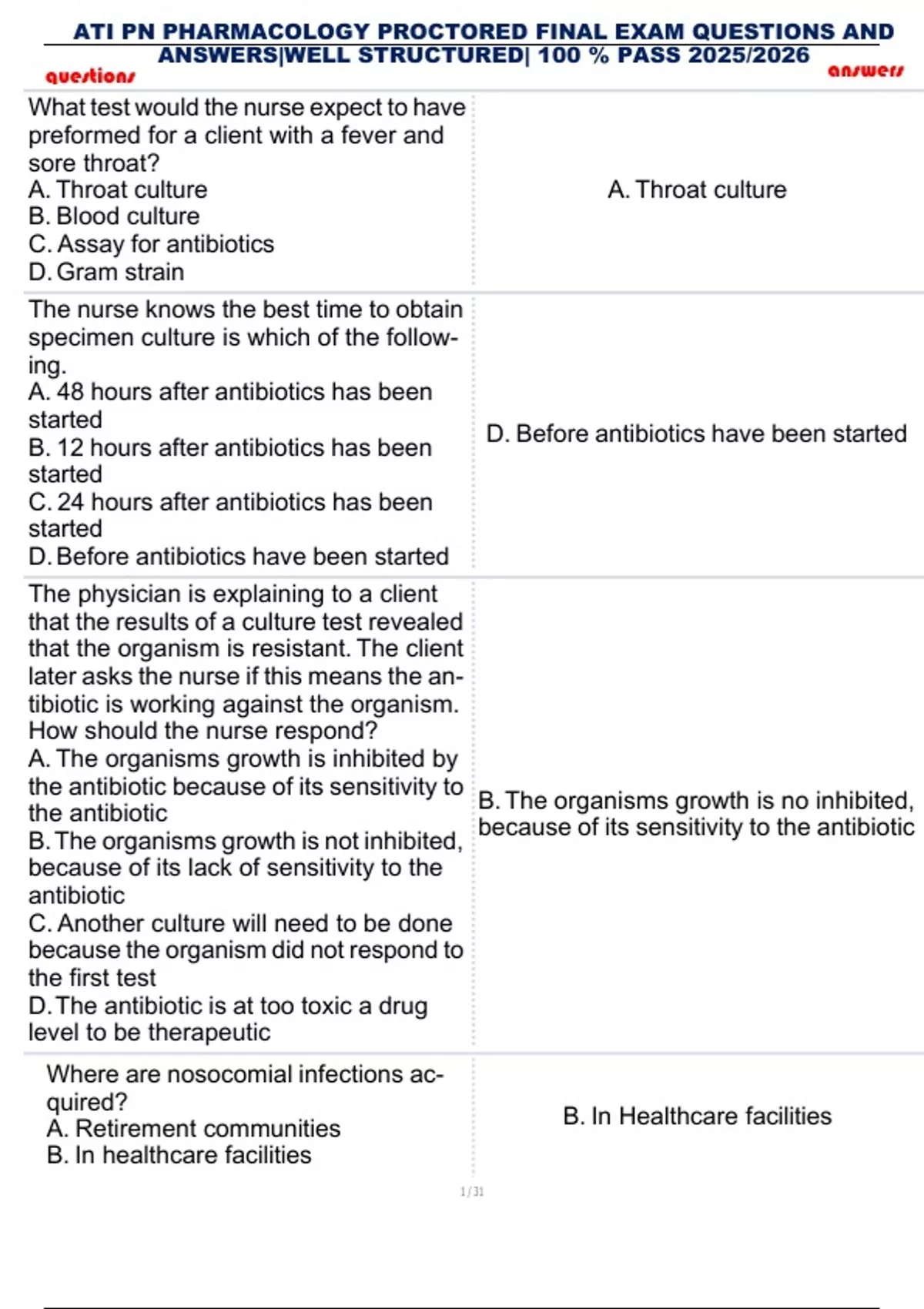 ATI PN PHARMACOLOGY PROCTORED FINAL EXAM QUESTIONS AND