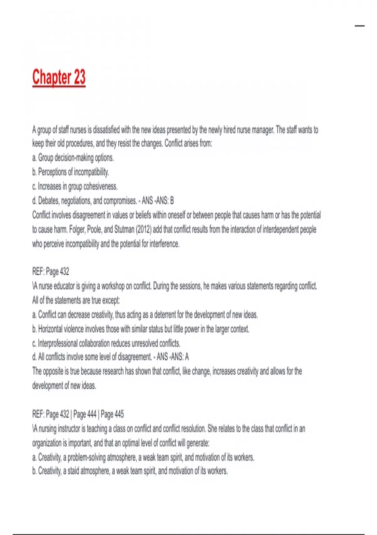 \A nursing instructor is teaching a class on conflict and conflict resolution. She relates to the class that conflict in an
