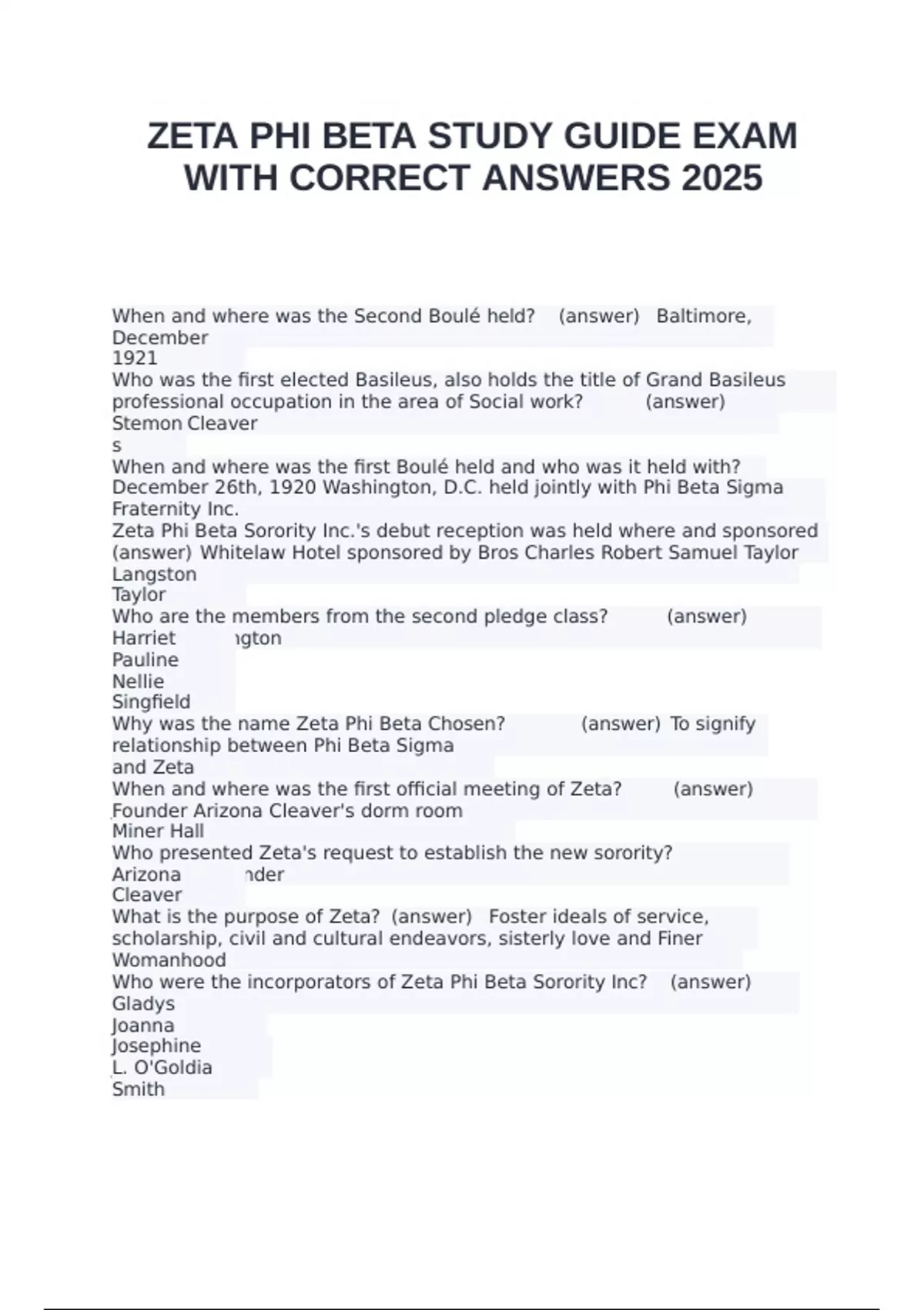 ZETA PHI BETA STUDY GUIDE EXAM