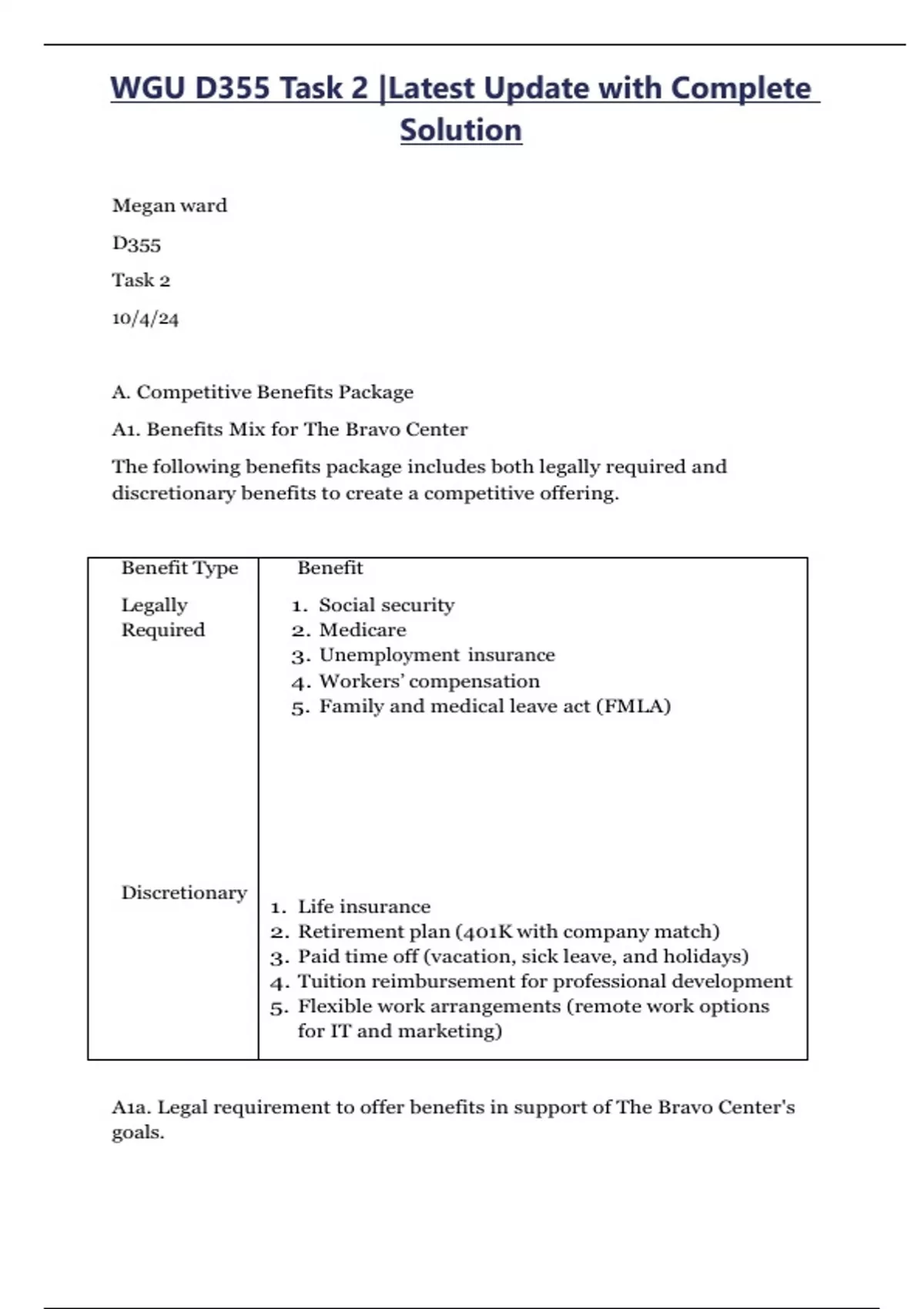 A1a. Legal requirement to offer benefits in support of The Bravo Center's