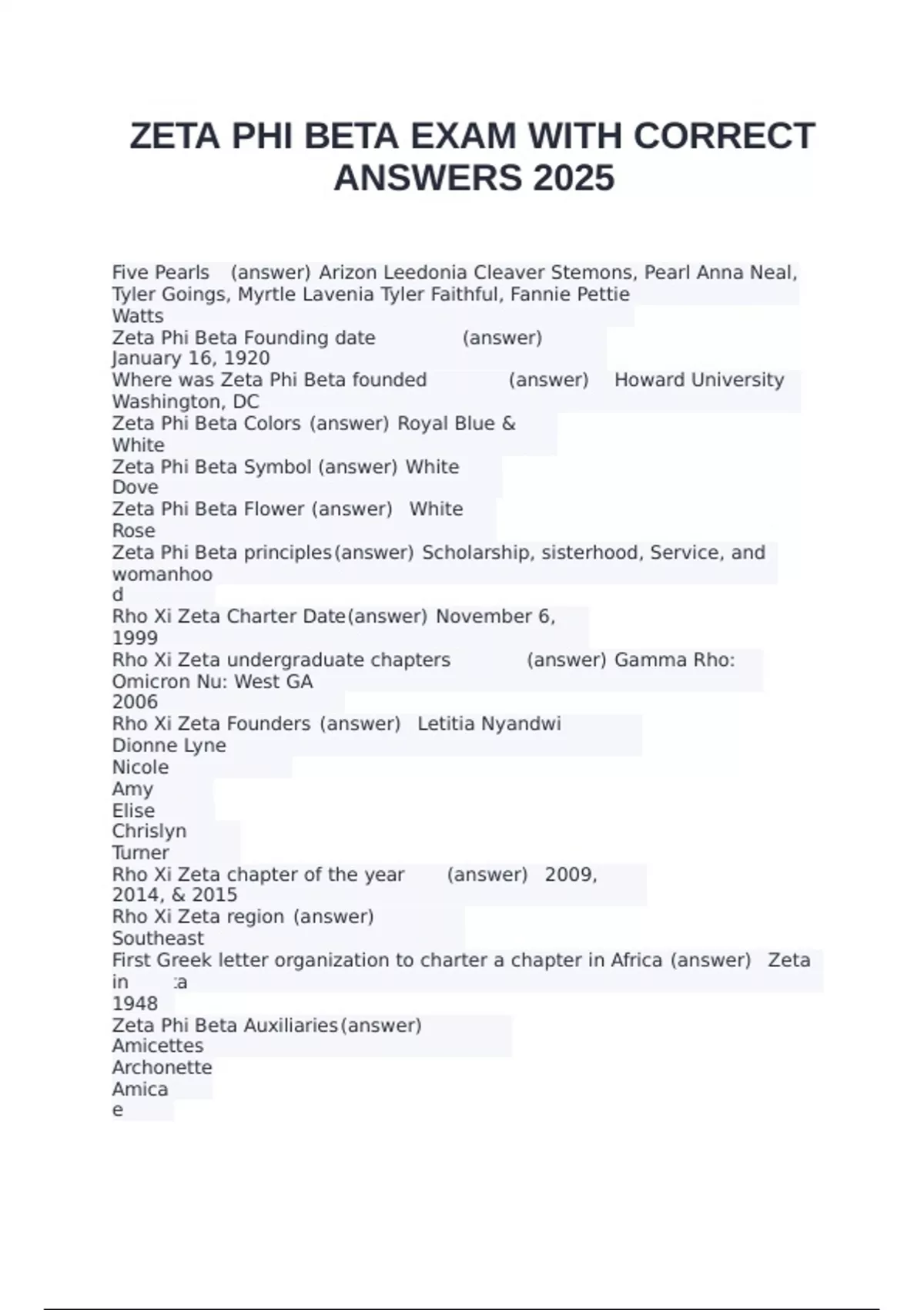 ZETA PHI BETA EXAM WITH CORRECT