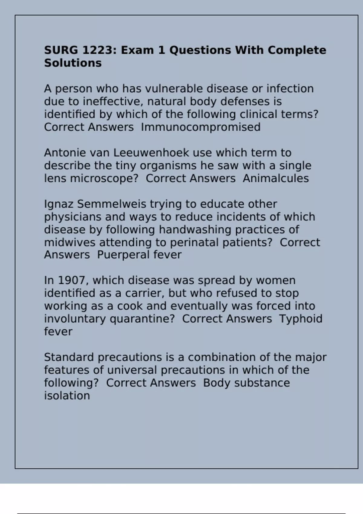 Correct Answers Immunocompromised
