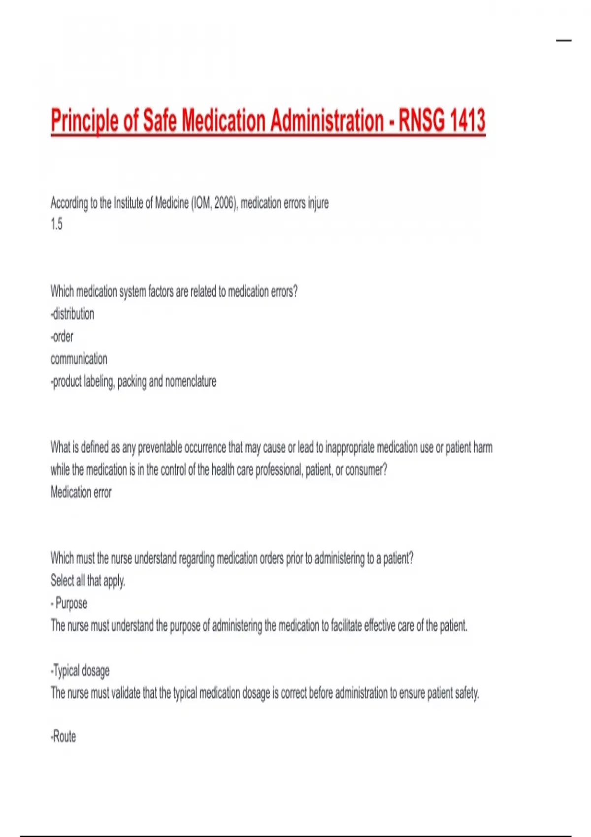 According to the Institute of Medicine (IOM, 2006), medication errors injure